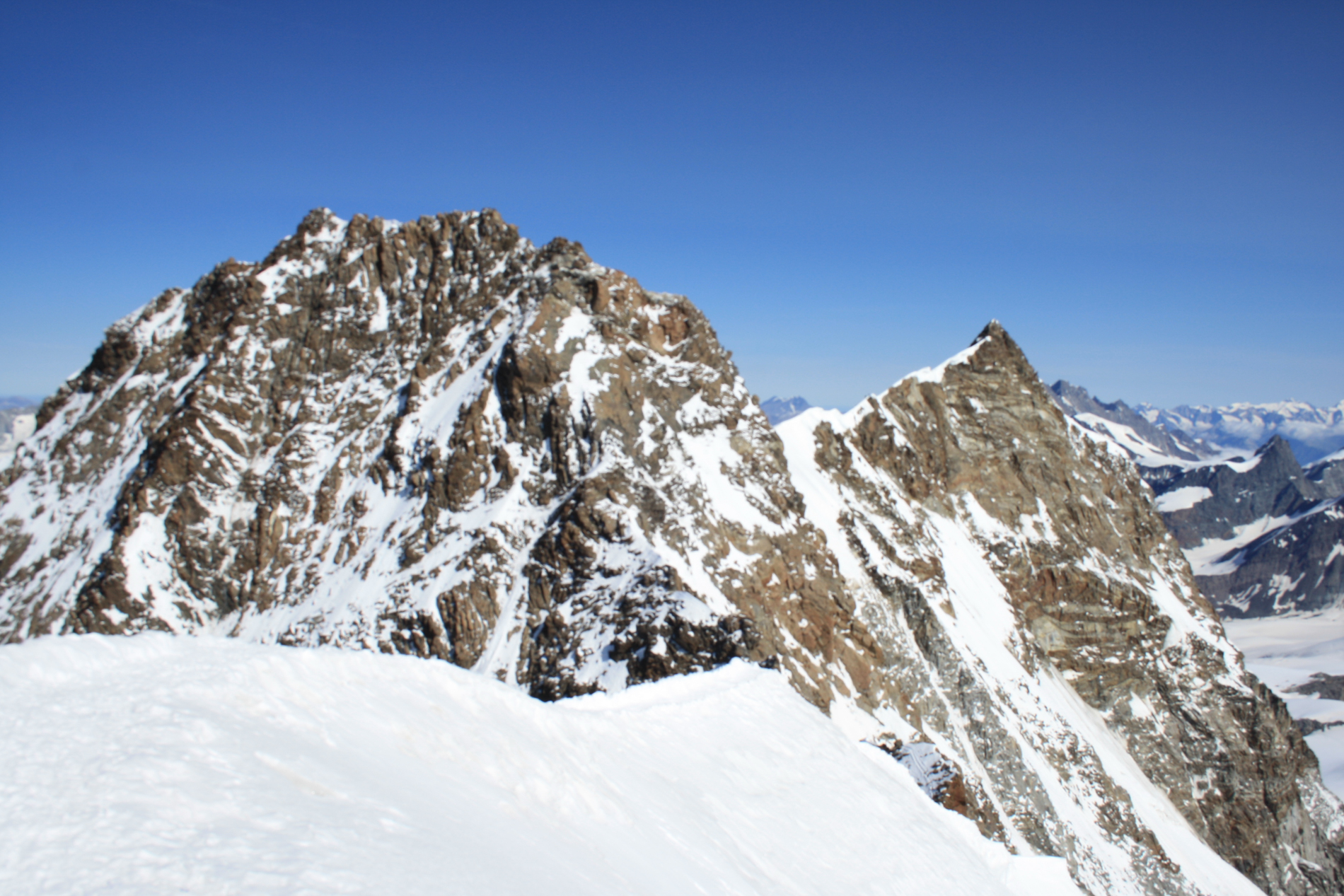 Ga mee naar de Monte Rosa in Wallis, een van de mooiste klimgebieden van de Alpen met een overvloed aan vierduizenders. Hoeveel kun jij er aan? Je begint bij het dalstation van de Kleinmatterhornbahn in Zermatt. Op de eerste dag beklim je de eerste set: de Westtop (4076 m) en de Oosttop (4159 m) van de Breithorn. Hierna volgen de Pollux (4092 m) en de Castor (4228 m), de Pyramide Vincent (4250 m), de Parrotspitze (4432 m), de Corno Nero (4321 m), de Ludwigshöhe (4341 m) en de Signalkuppe (4554 m). Het toetje is de Zumsteinspitze (4563 m). De hutten waar je tijdens de tocht overnacht, liggen allemaal op Italiaans grondgebied.