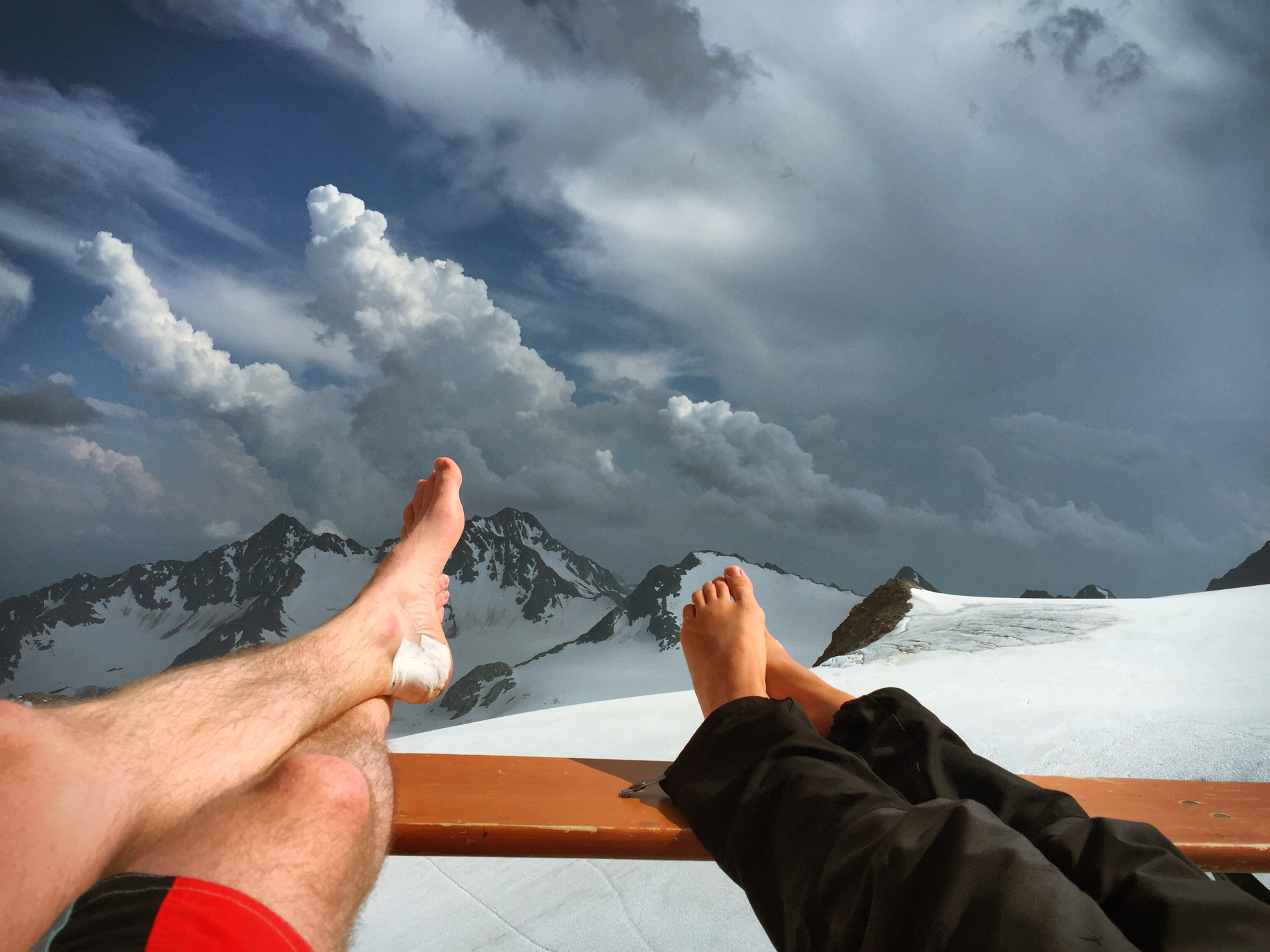 Hoewel je in de meeste berghutten geen culinaire hoogstandjes moet verwachten, wordt het eten in de hut steeds beter. Met dieetwensen als vegetarische maaltijden wordt doorgaans rekening gehouden als je deze bijtijds doorgeeft. Houd er wel rekening mee dat je in hooggelegen hutten die lastig bereikbaar zijn, minder tot geen keuze hebt in wat je eet. Wassen kan met een beetje geluk aan een kraan met warm water, maar steeds vaker kun je tegen betaling douchen. Na het avondeten plan je de tocht voor de volgende dag en pak je alvast je rugzak in. Om tien uur gaat het licht uit en geldt Hüttenruhe. Handig dus om een hoofdlamp bij je te hebben voor als je 's nachts naar de wc moet of 's ochtends vroeg opstaat.