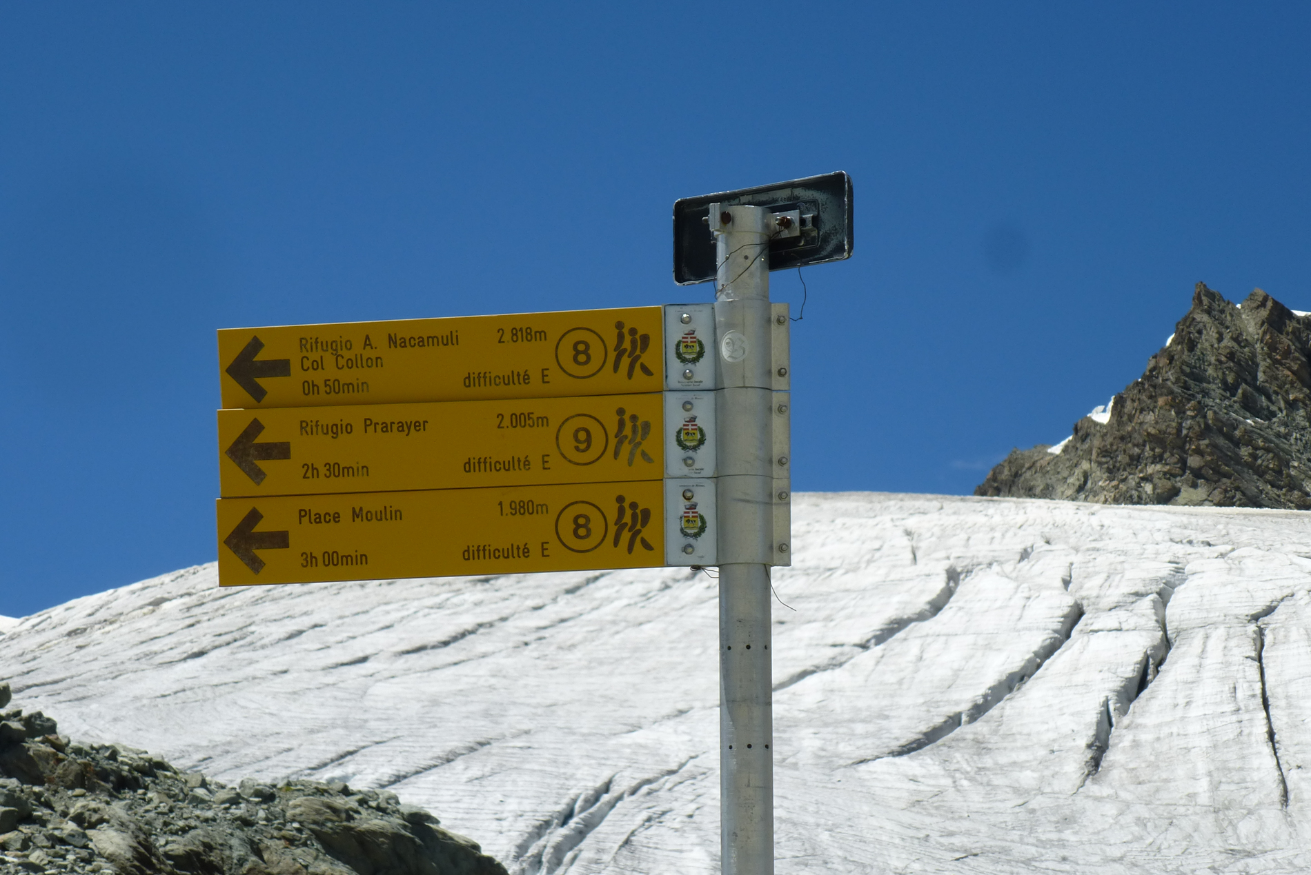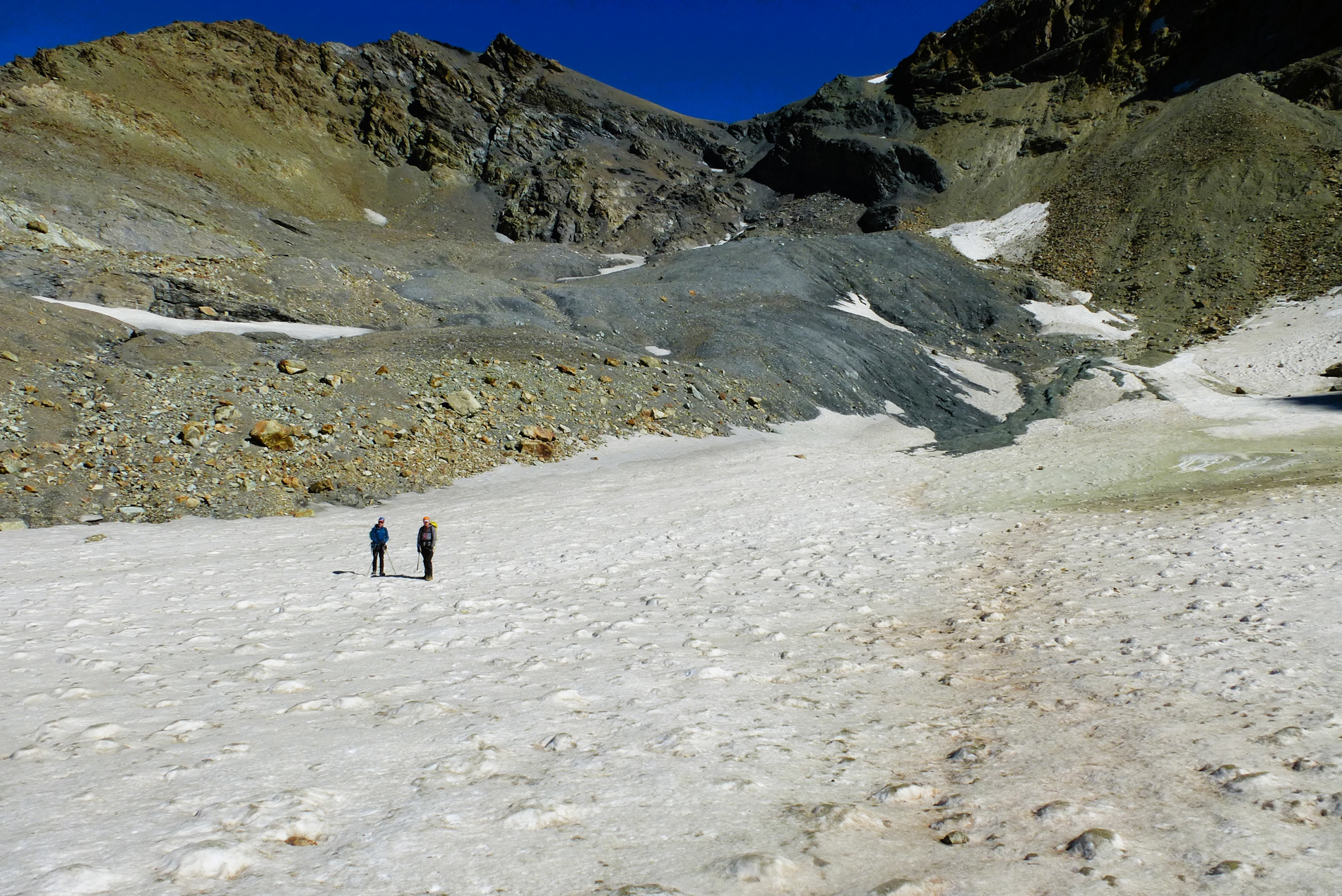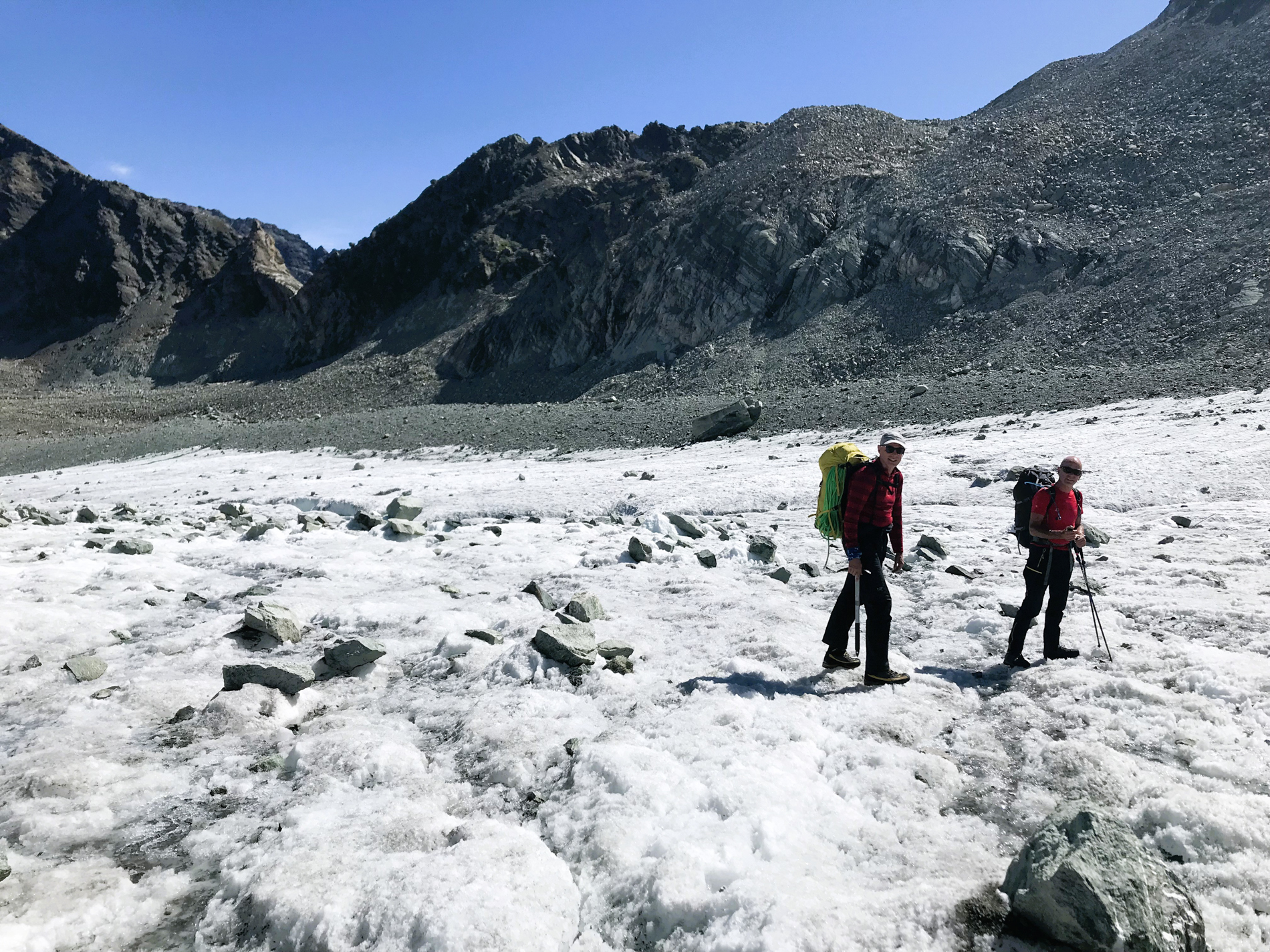 Afhankelijk van de sneeuw- en ijscondities op de gletsjers is het mogelijk dat uitgeweken moet worden naar een route met rots passages.