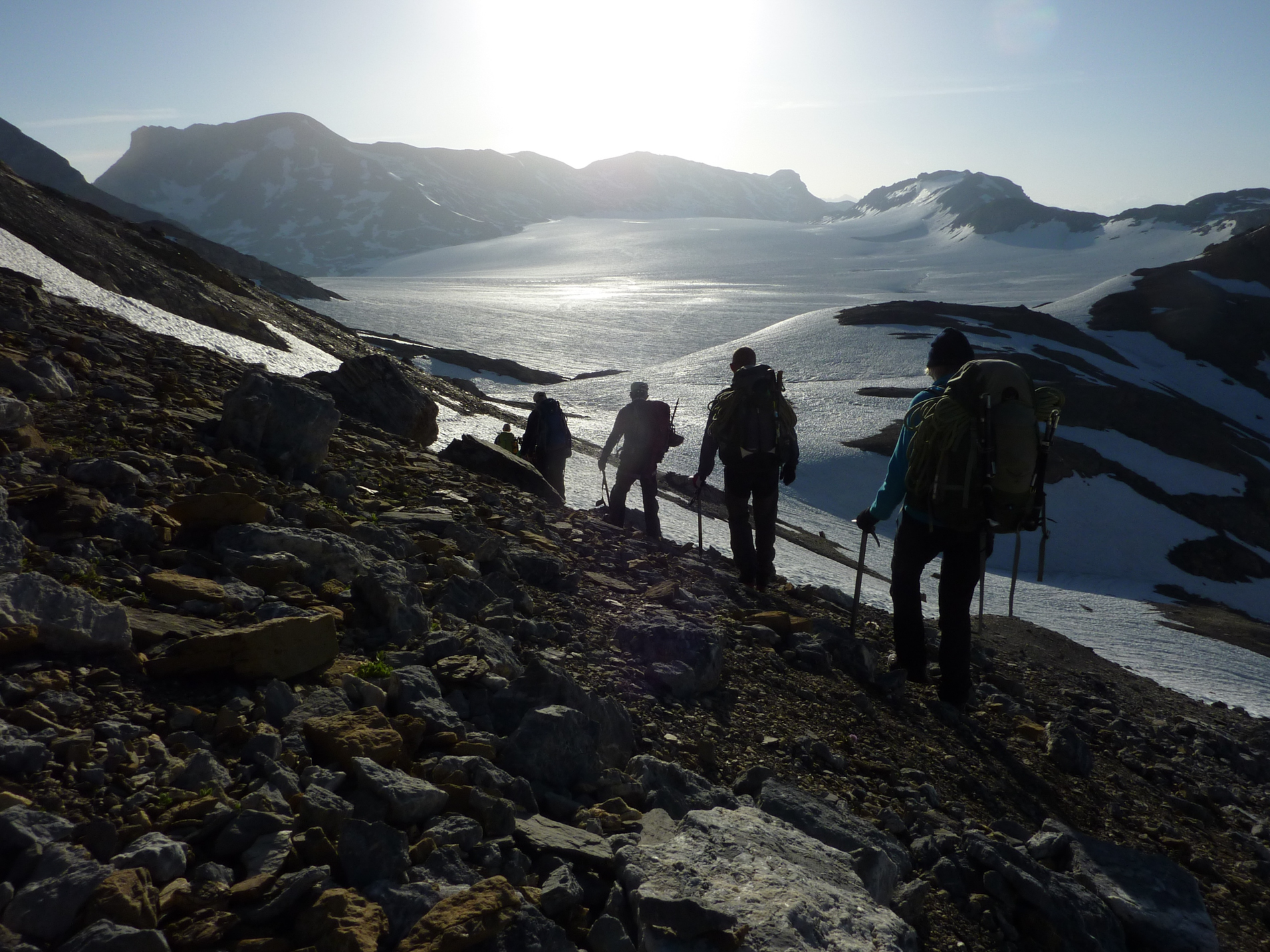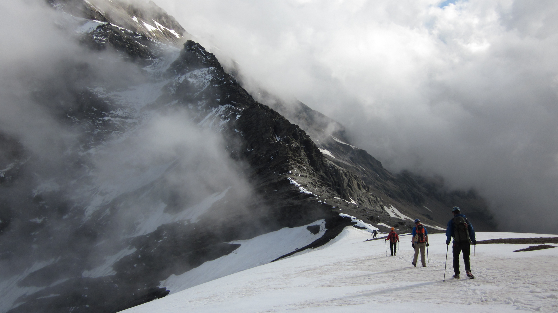 Afhankelijk van de sneeuw- en ijscondities op de gletsjers is het mogelijk dat uitgeweken moet worden naar een route met rots passages.
