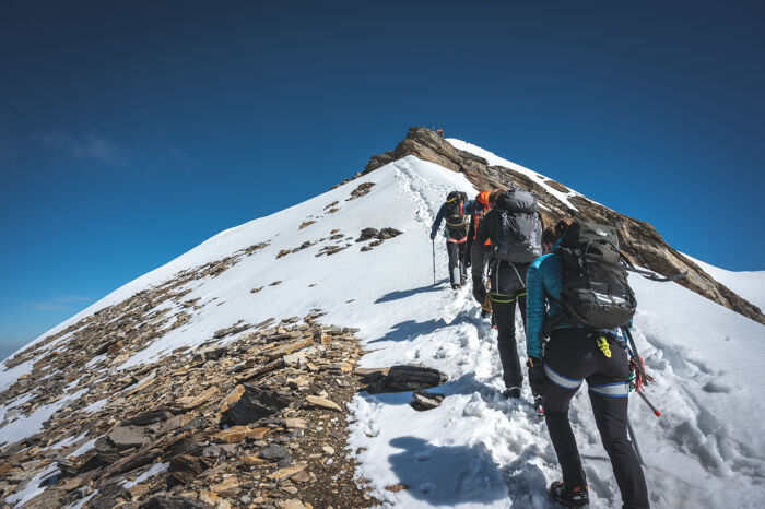 Voor de hoogalpiene tochten moet je eerder hebben deelgenomen aan een hoogalpiene tocht en/of een alpiene basiscursus (C1) hebben gevolgd of over gelijkwaardige ervaring beschikken.