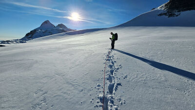 We starten in het Rijndal. Vanuit Disentis brengt een stoeltjeslift ons naar ruim 1800 meter, het begin van de tocht. Daarna volgen meerdere lange dagen met flinke hoogtemeters en prachtige gletsjers oversteken. Het terrein varieert: platen, blokken, steile passages met kettingen en staalkabels. Een goede conditie is nodig, net als ervaring in alpien terrein en het goed kunnen lopen op stijgijzers.