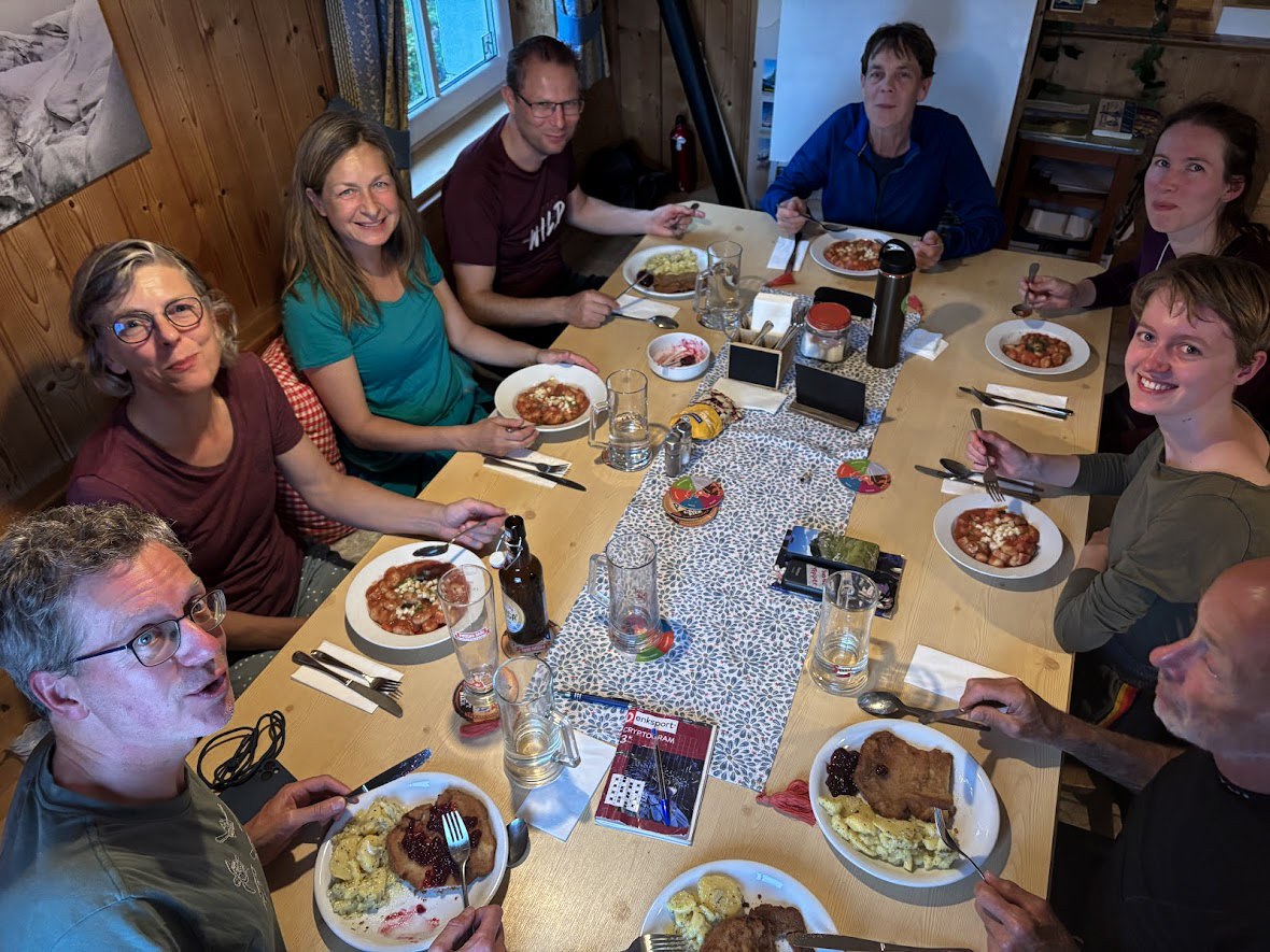 Hoewel je in de meeste berghutten geen culinaire hoogstandjes moet verwachten, wordt het eten in de hut steeds beter. Met dieetwensen als vegetarische maaltijden wordt doorgaans rekening gehouden als je deze bijtijds doorgeeft. Houd er wel rekening mee dat je in hooggelegen hutten die lastig bereikbaar zijn, minder tot geen keuze hebt in wat je eet. Wassen kan met een beetje geluk aan een kraan met warm water, maar steeds vaker kun je tegen betaling douchen. Na het avondeten plan je de tocht voor de volgende dag en pak je alvast je rugzak in. Om tien uur gaat het licht uit en geldt Hüttenruhe. Handig dus om een hoofdlamp bij je te hebben voor als je 's nachts naar de wc moet of 's ochtends vroeg opstaat.