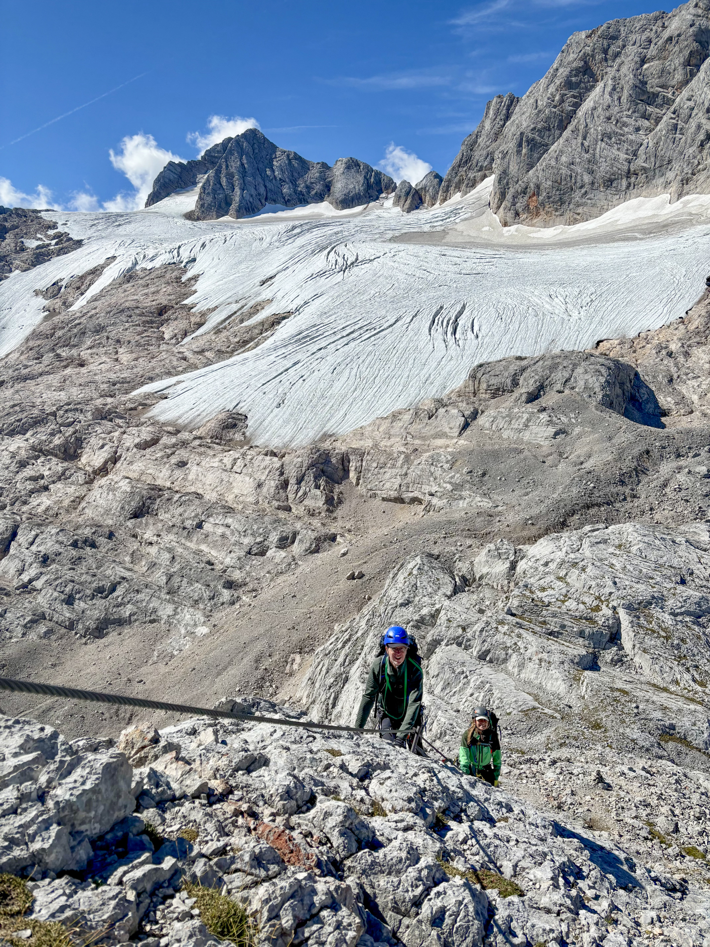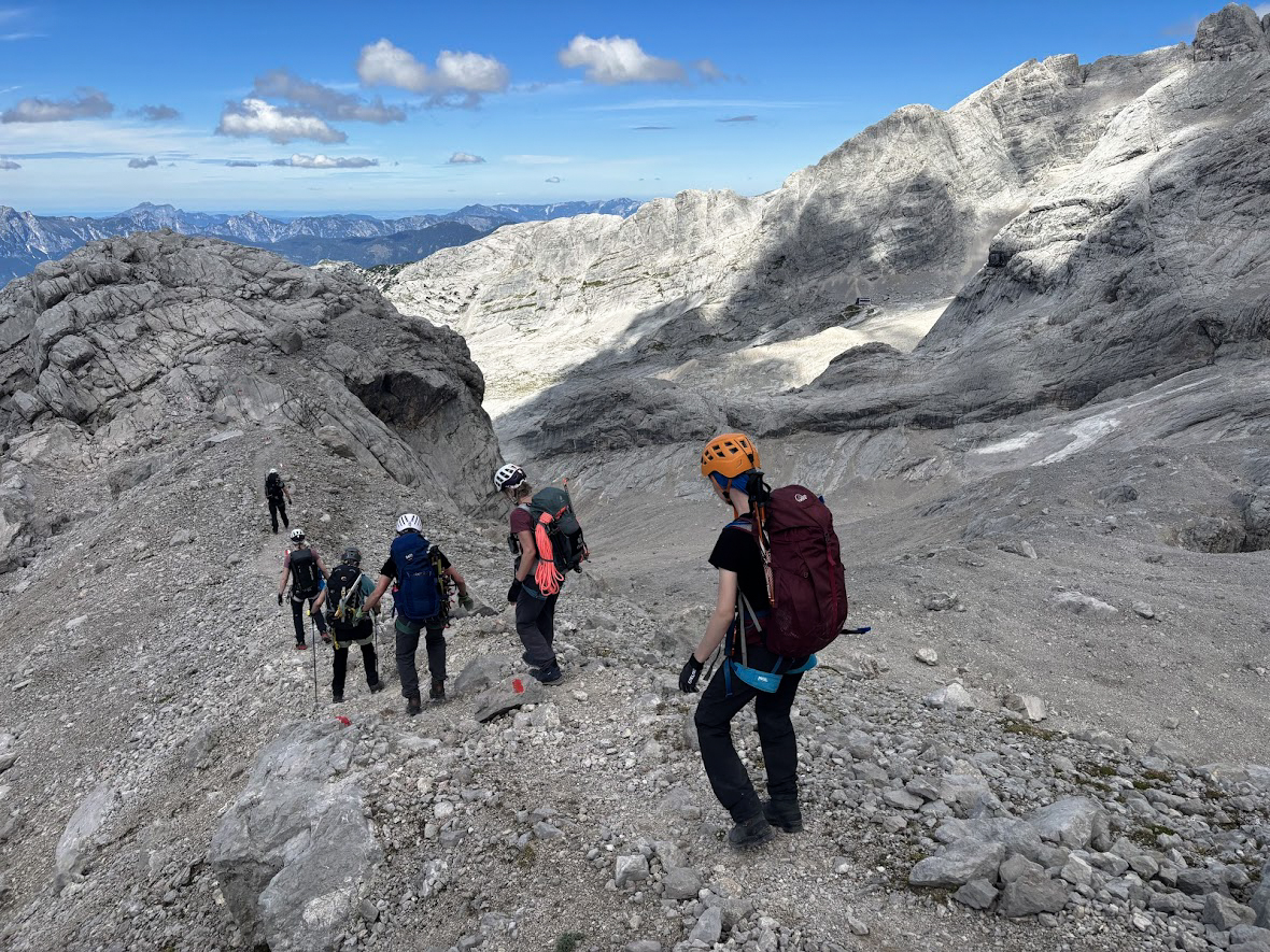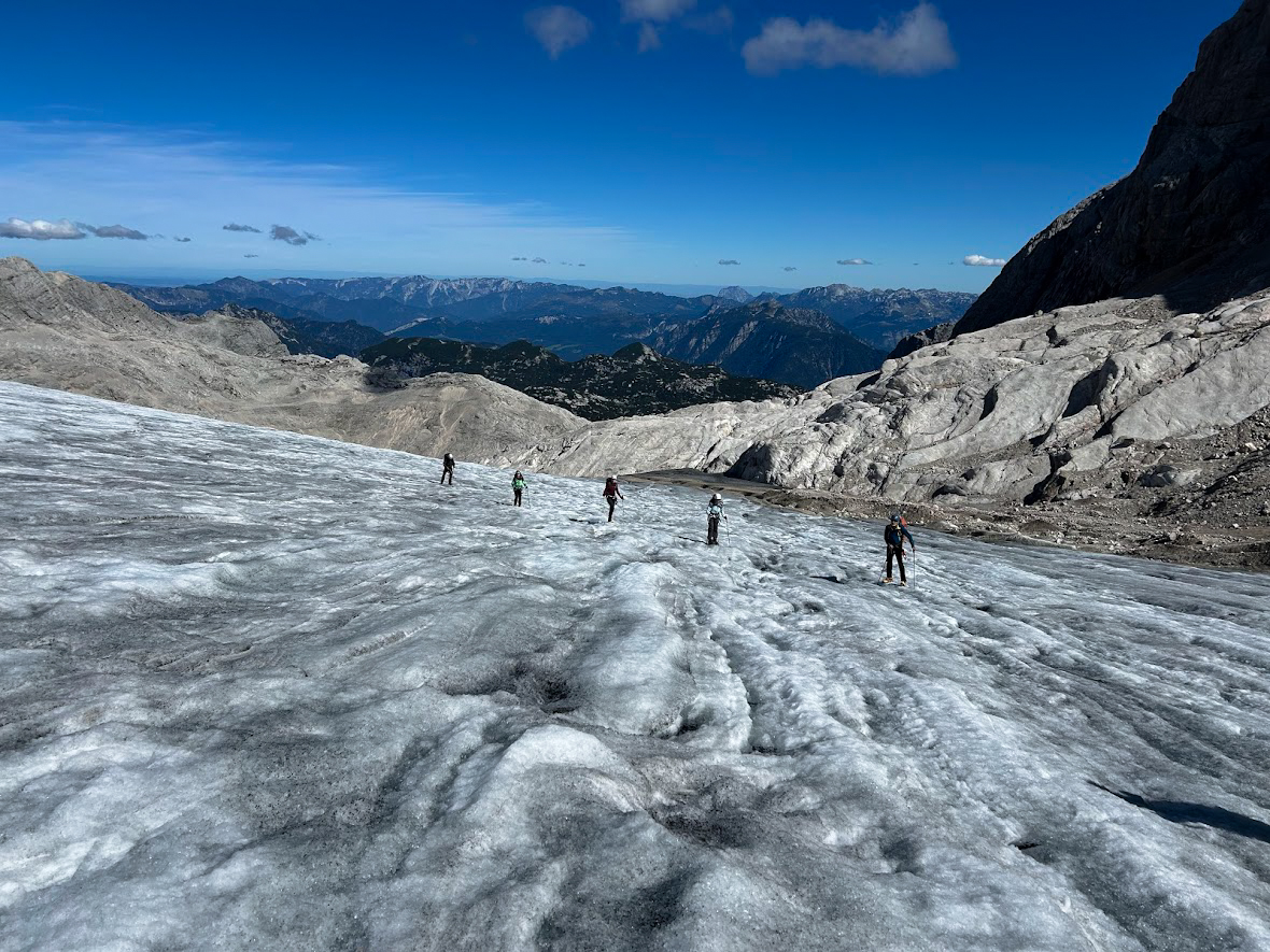 De Dachstein-Runde is een hoogalpiene tocht met enkele klettersteigs onderweg. Bij goed weer beklimmen we de Schöberl en nemen we de Ramsauer klettersteig. Naast de klettersteigset gaan ook stijgijzers mee, want als het zicht goed is, trekken we over de restanten van de Hallstätter- en Schladminger gletsjers.