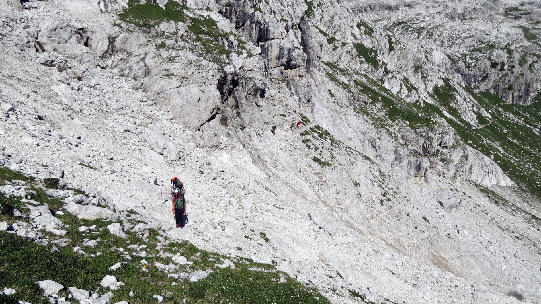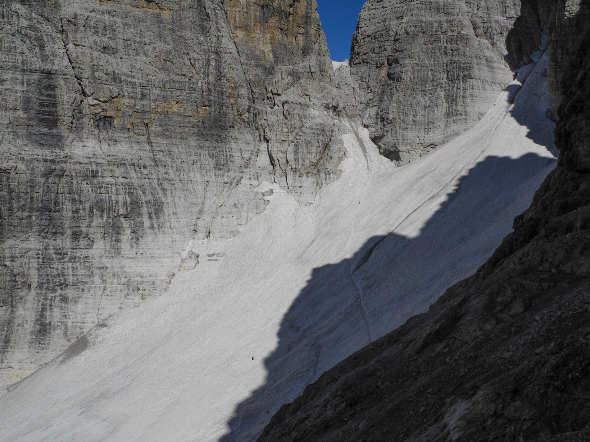 Klik-klik-sjchhhh. Je hoort je klettersteigset van ankerpunt naar ankerpunt schuiven. In de Brenta Dolomieten in Trentino klim je langs steile rotswanden, over kleine gletsjers en sneeuwvelden, onder de schaduw van hoge rotstorens. Zeven dagen trek je rond door dit klimparadijs van de Brenta, een bastion van dolomietgesteente en ijs. Door de sterke erosie van het relatief zachte dolomiet bevinden zich onder de machtige rotsbastions, -torens en -naalden uitgestrekte puinvelden.In de schaduwrijke dalen tussen de wanden ligt -vooral aan de westzijde van de berggroep- een vijftiental kleine gletsjers.