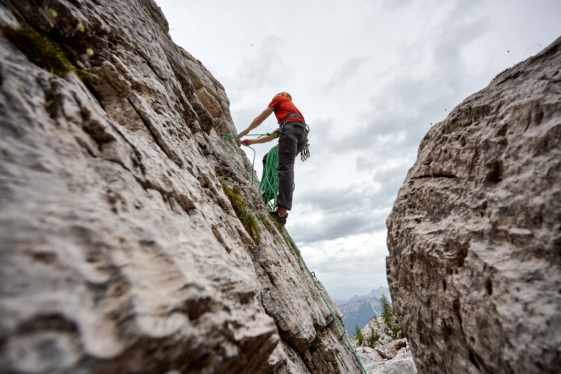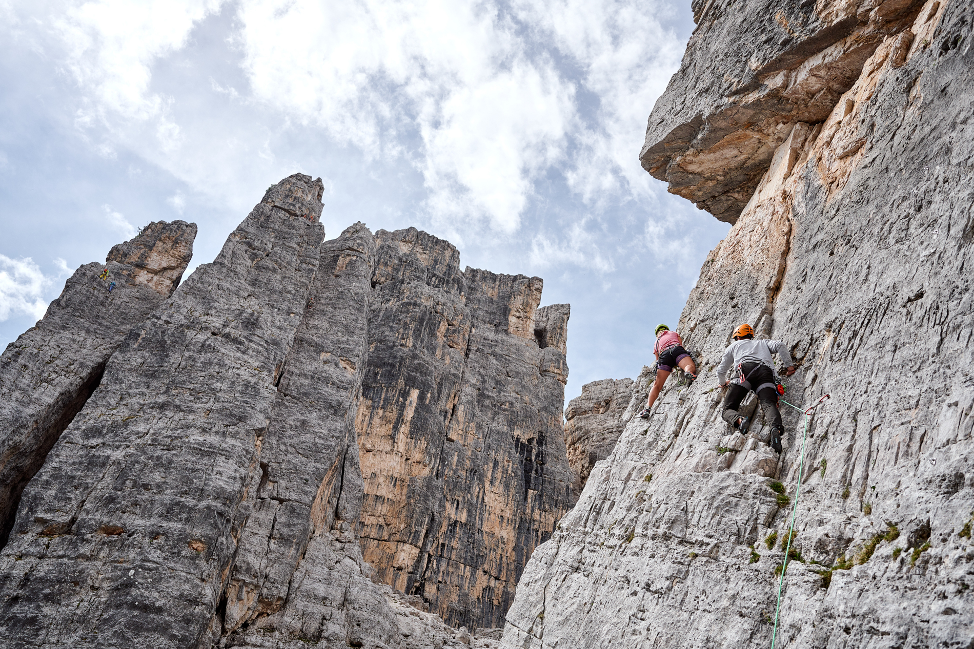 Op de kalkachtige rotsformaties met steile wanden kun je je goed uitleven. Het dolomietgesteente is ruwer en meer verblokt. Goede grip gegarandeerd! We proberen veel meters te maken. Je bezoekt elke dag een ander klimgebied (Plätzwiese, Höhlensteintal, Rienztal, Popena Bassa) en je verlegt langzaam je grenzen en de moeilijkheidsgraad. Je leert tijdens de basiscursus rotsklimmen zekeren, standplaats bouwen en abseilen. En je leert natuurlijk voorklimmen van singlepitch routes. Tijdens deze cursusweek is een gezellig Gasthof in het Pustertal je uitvalsbasis. Bij het succesvol afronden van je cursus, ontvang je het Klimvaardigheidsbewijs Outdoor Voorklimmen - Singlepitch.