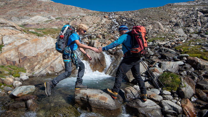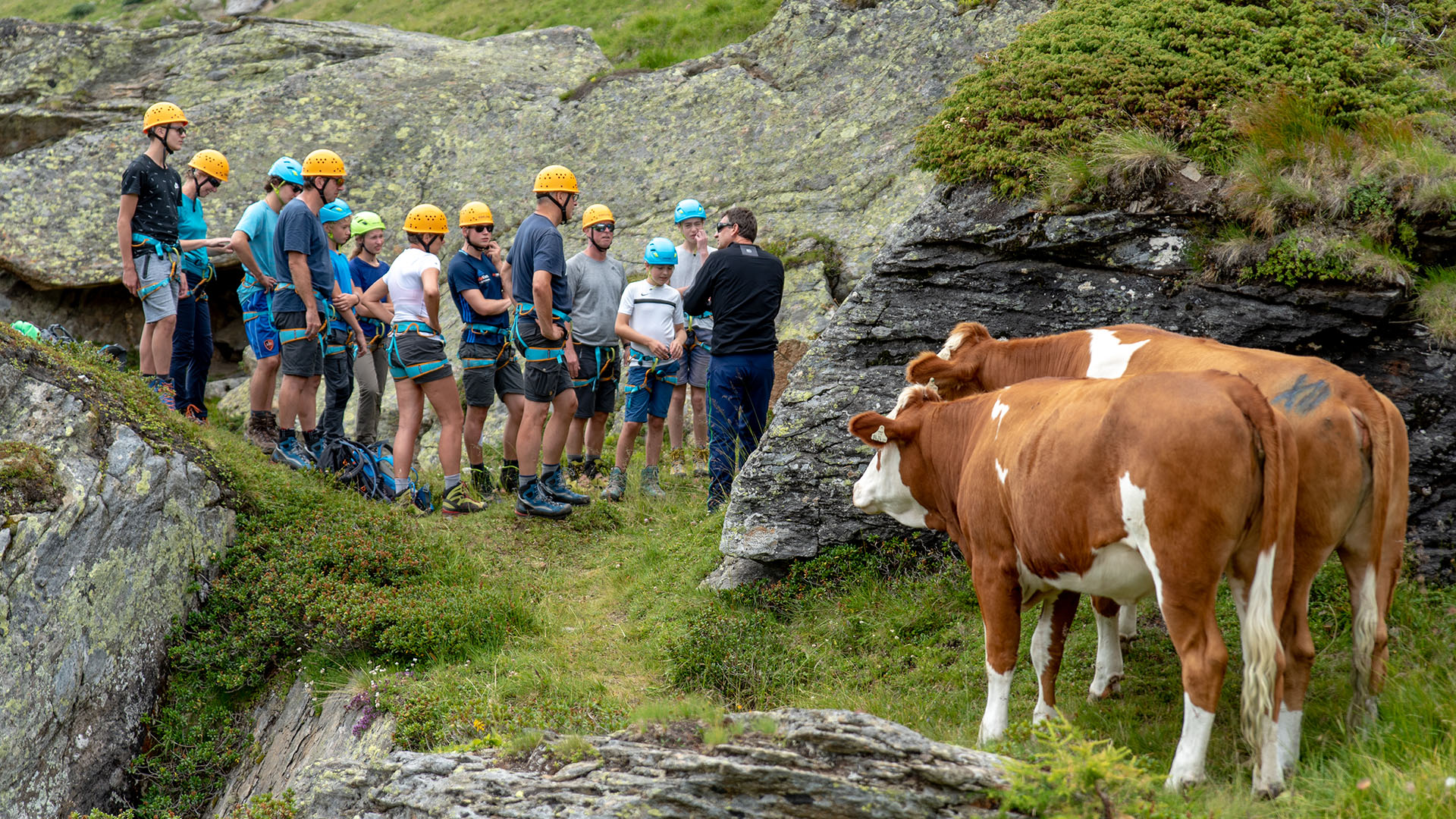 Naast sneeuw en ijs gaat het ook om klimmen door blokkenterrein, touwtechnieken in de rots en het vinden van de juiste route. Zo bouwen jullie samen vertrouwen en vaardigheden op.