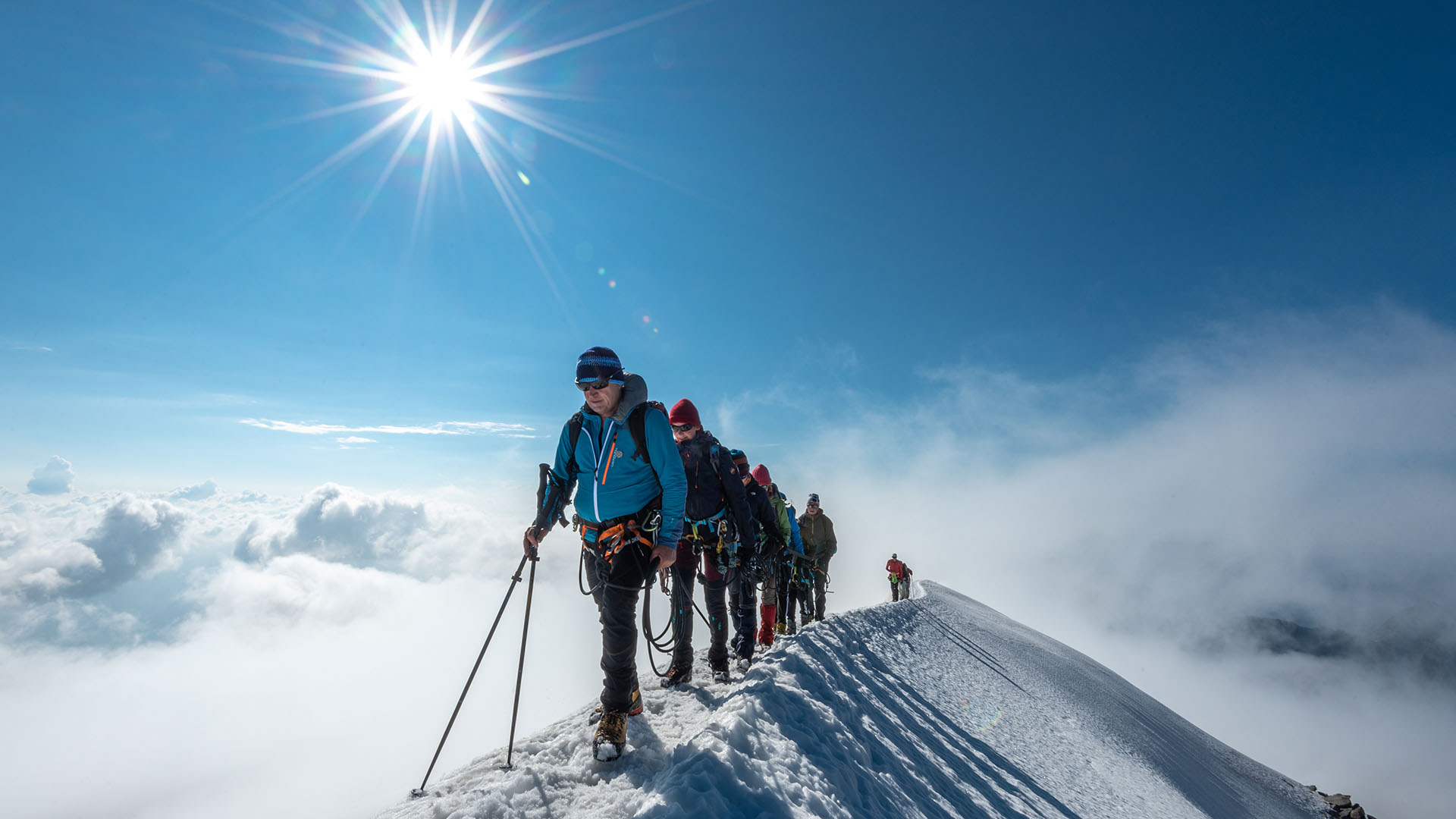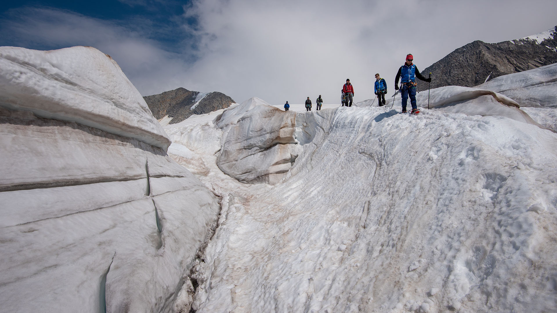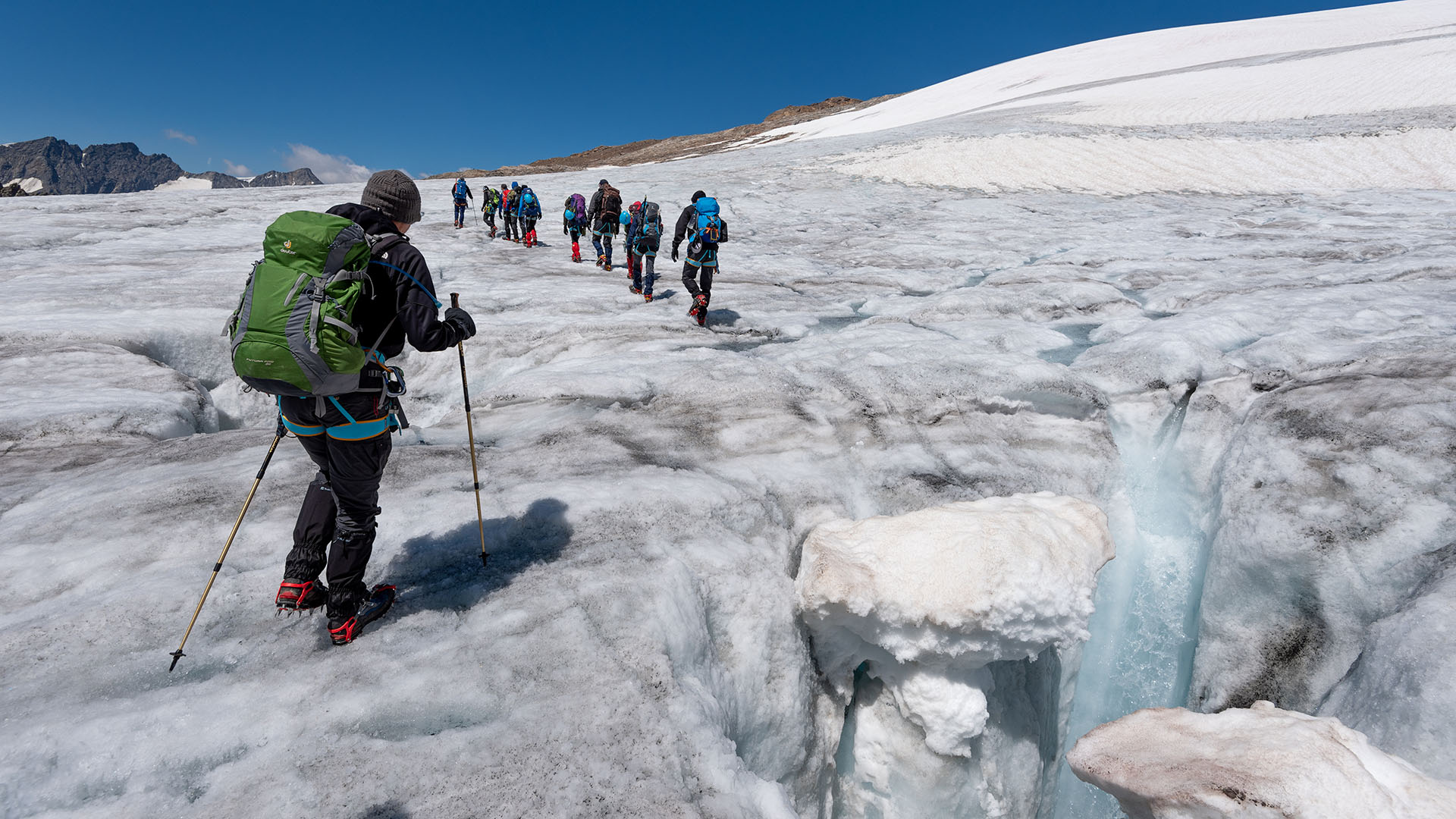 De basiscursus, oftewel C1 of J1 voor jeugd, is de eerste stap in je alpiene klimcarrière. Je oefent het bergwandelen en klimmen in rotsachtig terrein, het doorkruisen van (steile) sneeuwvelden en het lopen met stijgijzers op de gletsjer. Verder krijg je theorie over tochtplanning, oriëntatie en alpiene gevaren. Je overnacht in hooggelegen berghutten. Na deze cursus ken je de basisvaardigheden voor het maken van eenvoudige alpiene tochten en heb je je eerste stap als zelfstandig alpinist gemaakt!