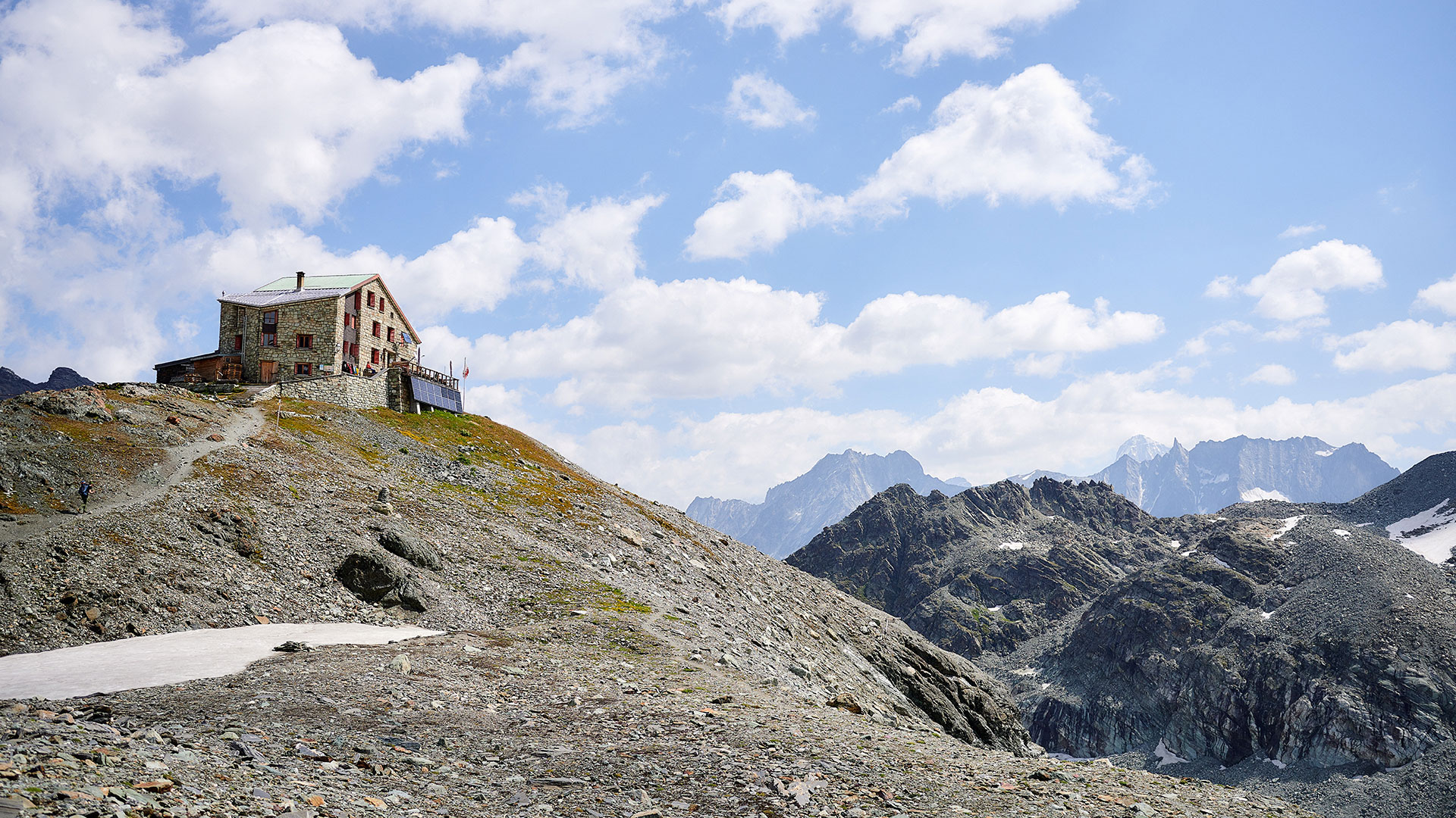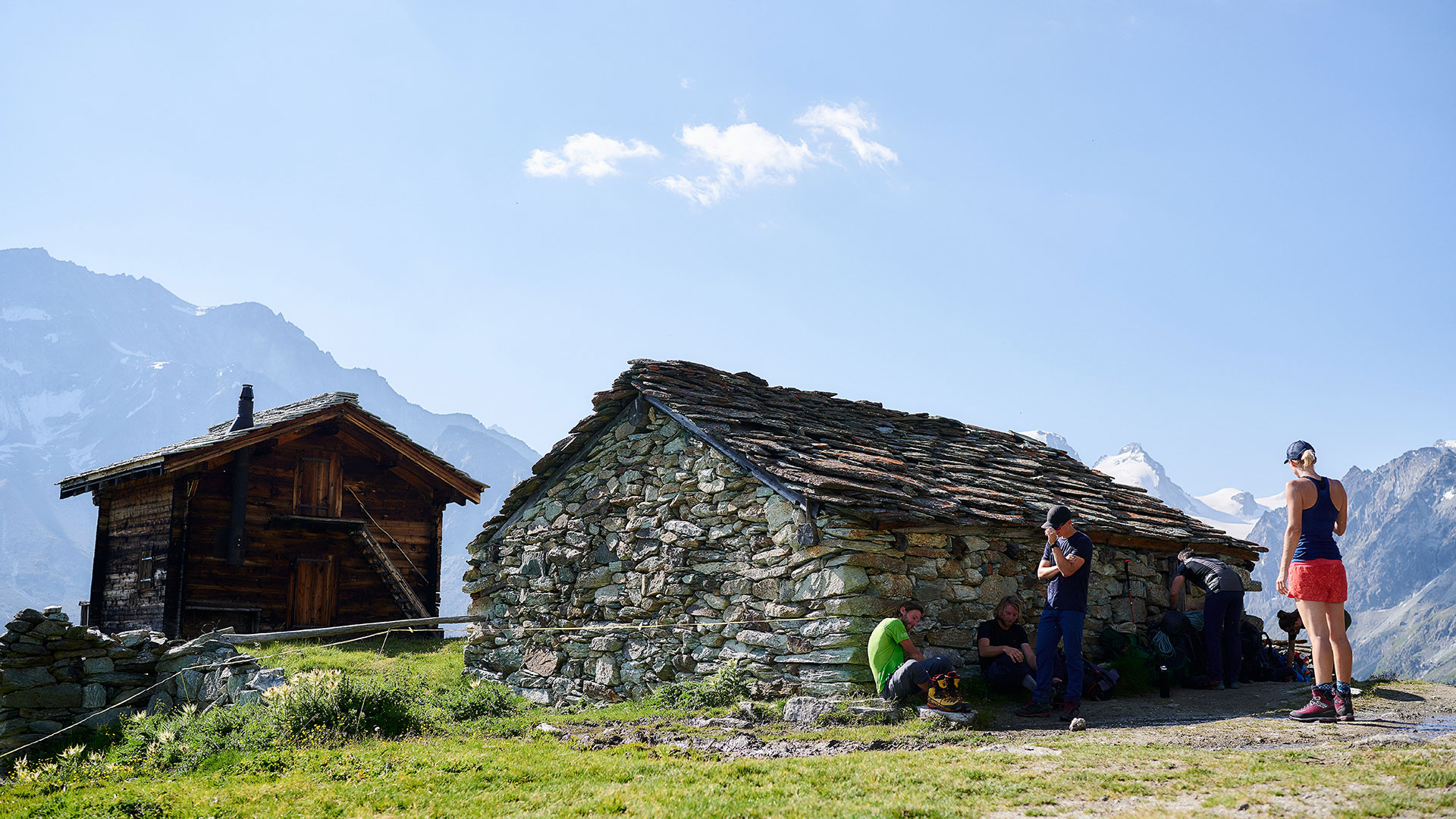 Arolla (2008m) is onze uitvalsbasis voor het begin van de week. In ons pension Aiguille de la Tza ontmoeten we de gids en controleren we elkaars klimmateriaal. Heb je de juiste (hoeveelheid) slinges en prusiktouwtjes mee? En een gordel? Dan is het tijd voor de eerste kennismaking met de basis van de alpiene touwtechnieken en klimoefeningen in de rotsen bij Arolla.