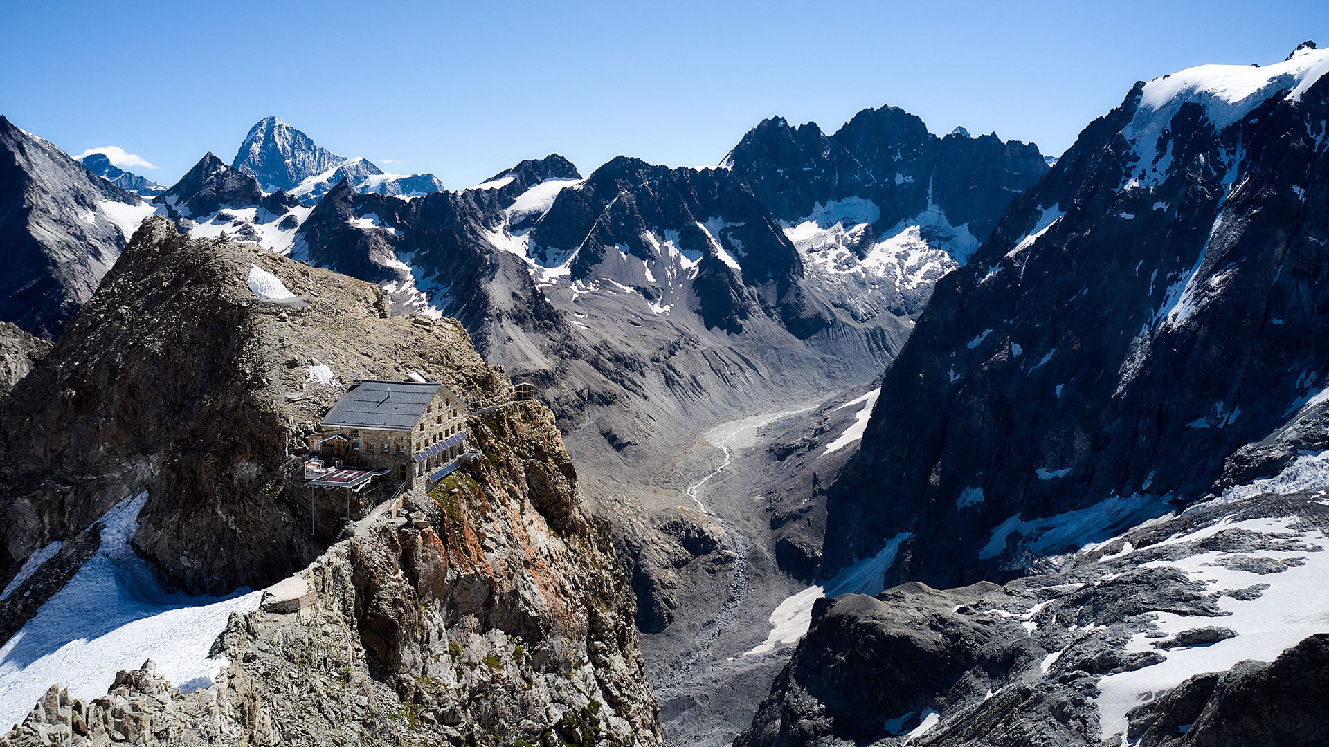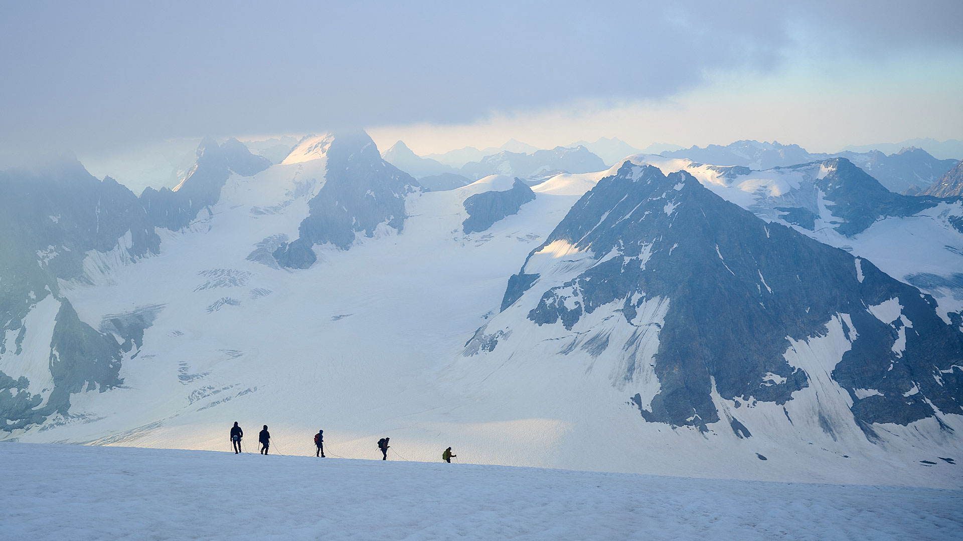 De uitdagendste basiscursus in ons programma. Heb jij de conditie van een marinier en stalen zenuwen? Mooi, want de alpiene basiscursus in het Zwitserse Wallis is de uitdagendste alpiene cursus voor beginners. Het gebied is beroemd om zijn vierduizenders, en ook al beklim je die deze week niet, het maakt wel dat je omgeving bestaat uit rotsen, sneeuw en ijs zo ver je kunt kijken.