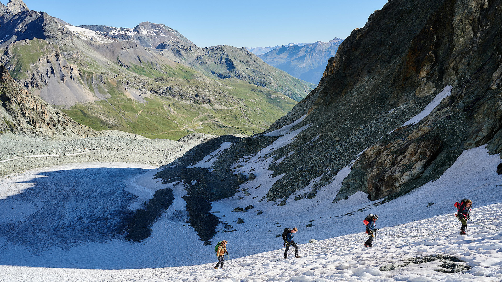 De basiscursus, oftewel C1 of J1 voor jeugd, is de eerste stap in je alpiene klimcarrière. Je oefent het bergwandelen en klimmen in rotsachtig terrein, het doorkruisen van (steile) sneeuwvelden en het lopen met stijgijzers op de gletsjer. Verder krijg je theorie over tochtplanning, oriëntatie en alpiene gevaren. Je overnacht in hooggelegen berghutten. Na deze cursus ken je de basisvaardigheden voor het maken van eenvoudige alpiene tochten en heb je je eerste stap als zelfstandig alpinist gemaakt!