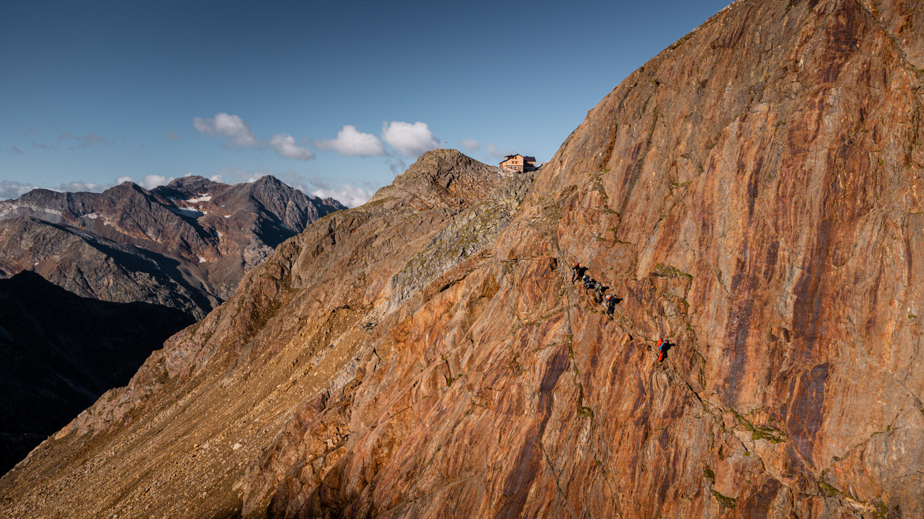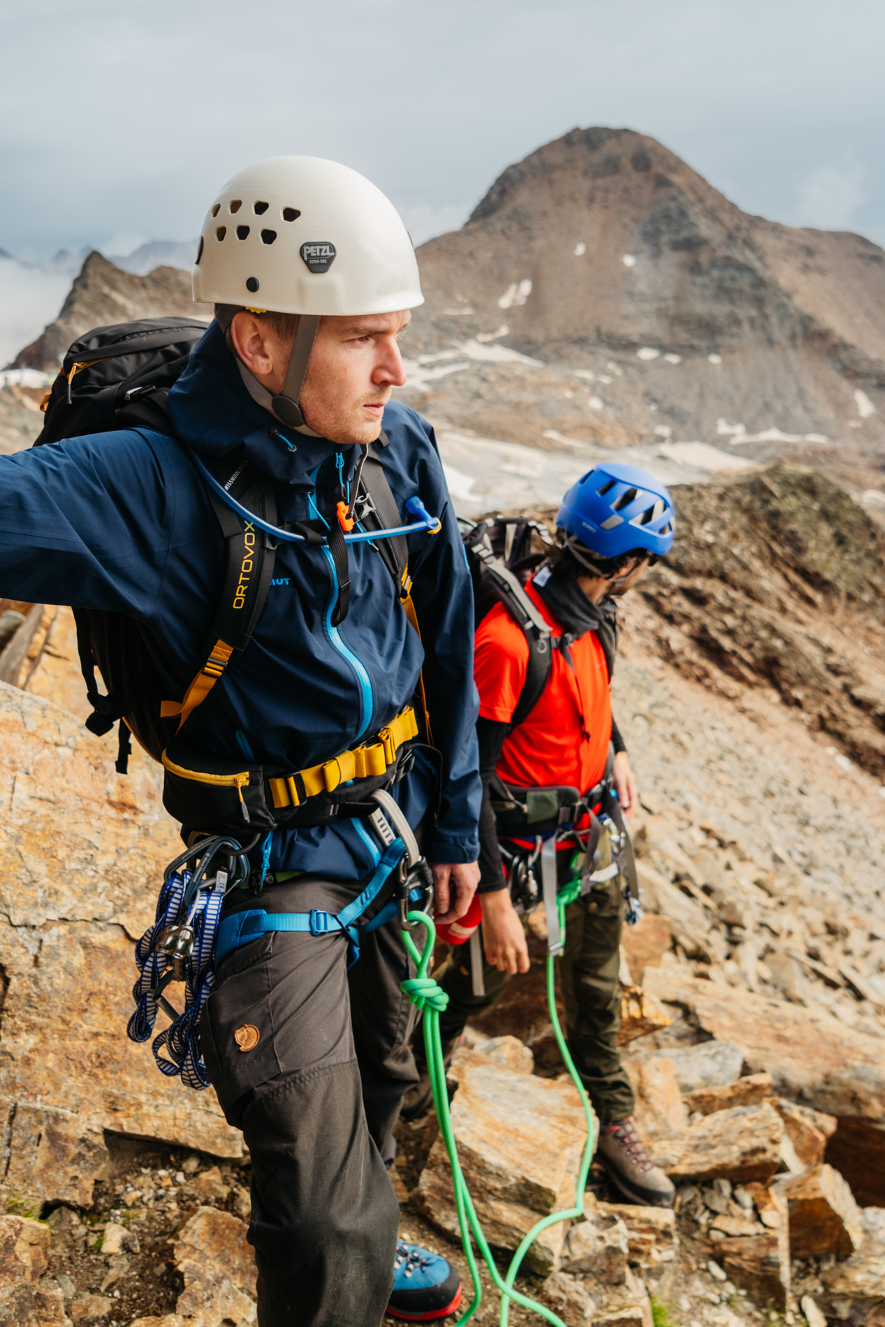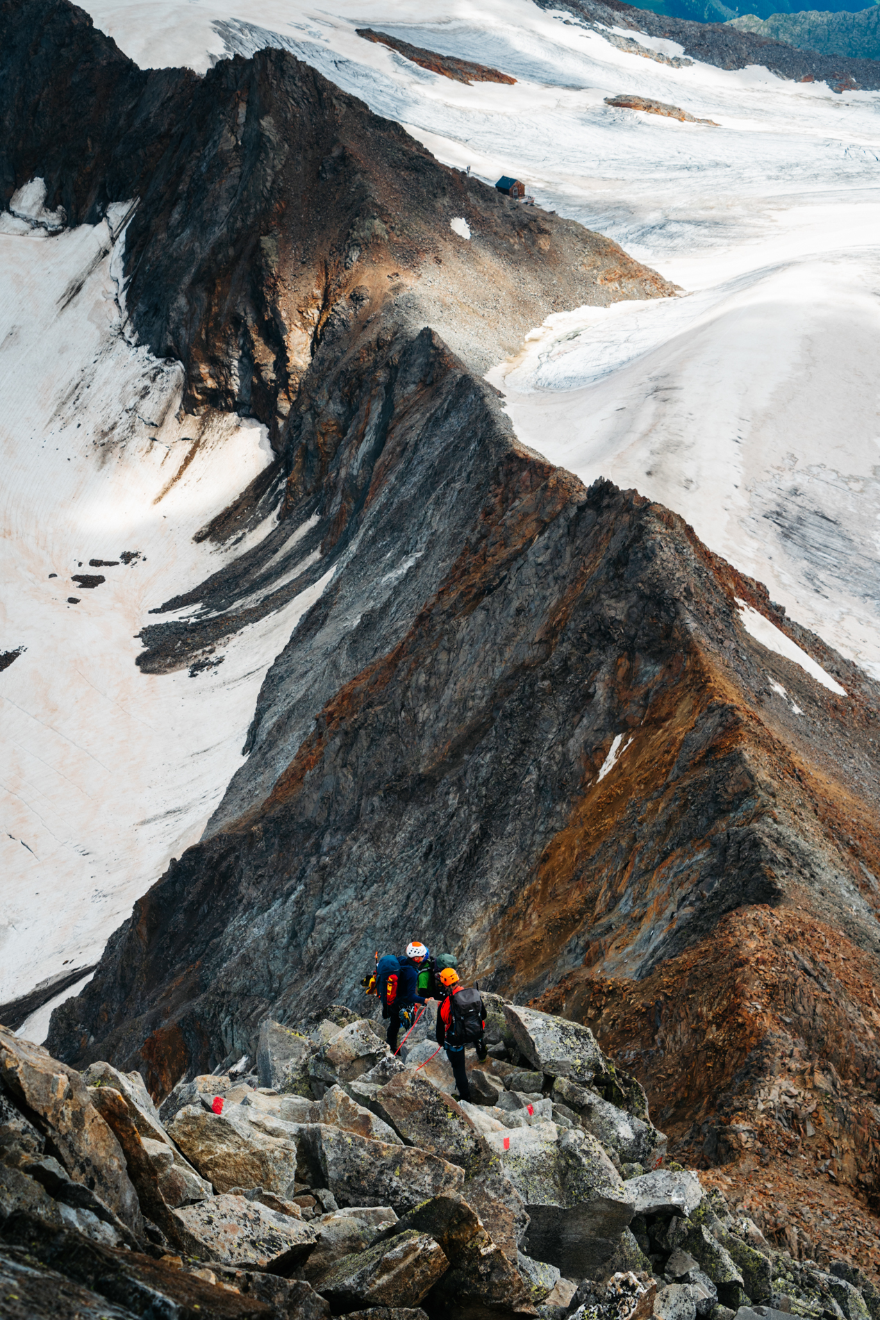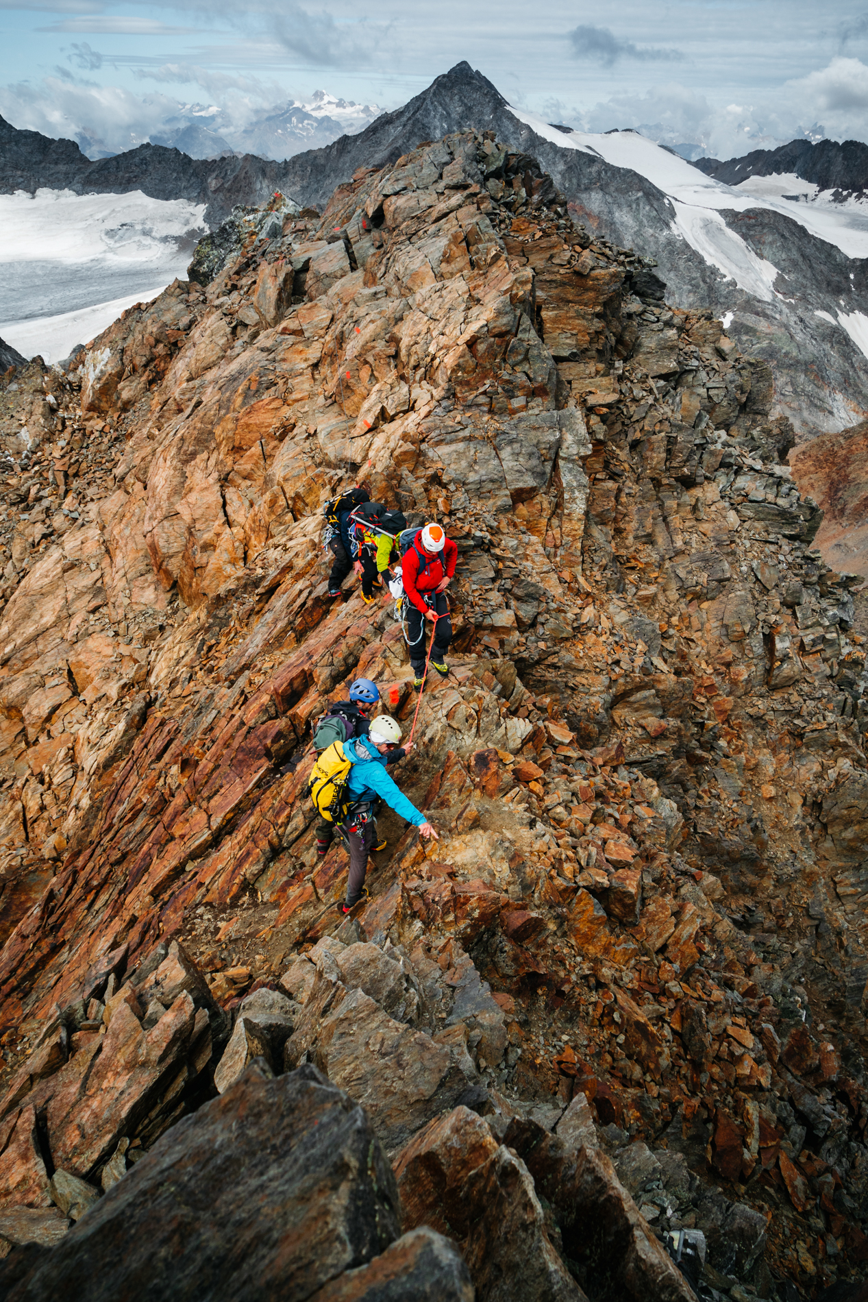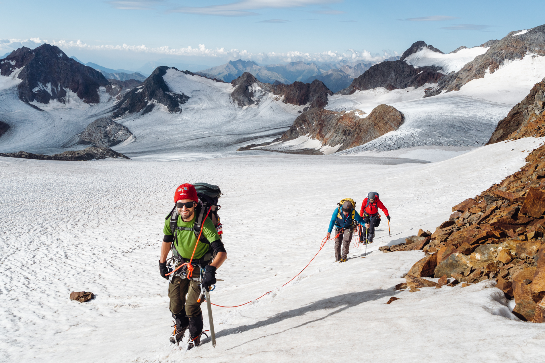 Toppen boven de drieduizend meter, lange blokkengraten, oude morenenwallen en uitgestrekte gletsjers: de Stubaier Alpen hebben het allemaal. De eerste dagen verblijf je in de Hildesheimerhütte. Vanuit de hut maak je dagtochten waarin je oefent met touwtechnieken, bergredding en ijsklimmen. Een klimgebiedje vlakbij de hut is ideaal voor oefenen met klimmen, abseilen en standplaatsbouw.