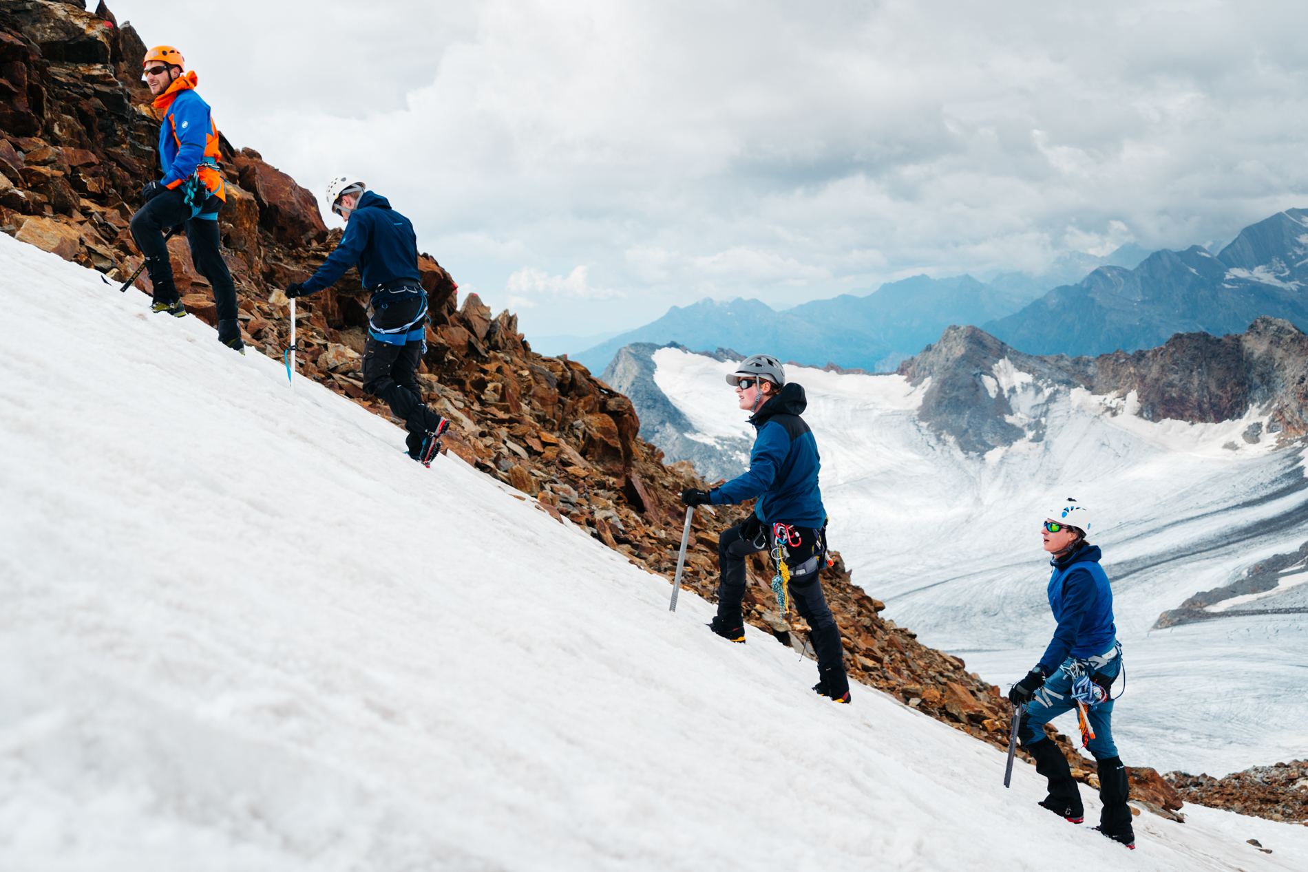 Op de Pfaffenferner perfectioneren we onze touwtechnieken en besteden we aandacht aan stijgijzer- en pickeltechnieken. Ook standplaatsbouw in ijs komt aan bod en oefeningen in sneeuw en firn want dat zullen we nodig hebben tijdens onze beklimmingen later in de week.