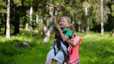 Op de camping zelf bevindt zich een klimtoren, een boomklimparcours en nog veel meer.