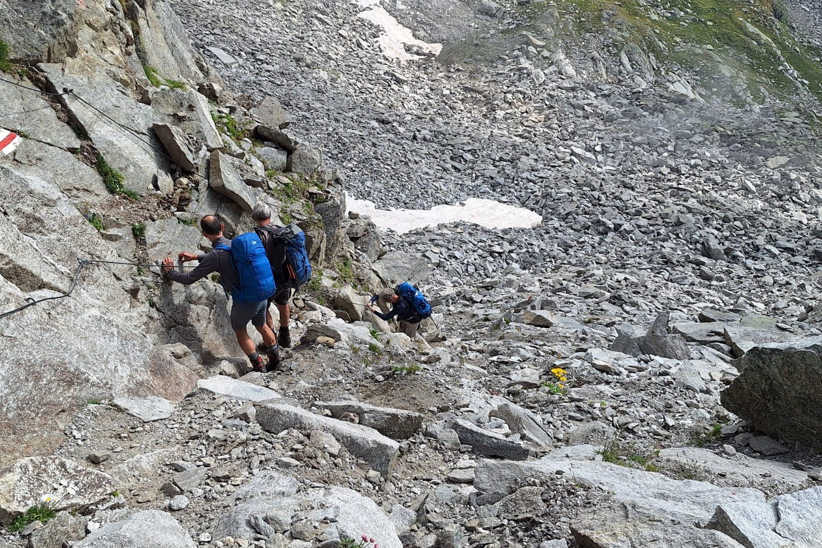 Tijdens deze huttentocht volg je niet alleen goed begaanbare bergpaden, maar loop je ook regelmatig door ongebaand terrein. Dit kan bestaan uit blokkenterrein, rotsplaten of steile gruishellingen. Ook het oversteken van een sneeuwveld kan voorkomen tijdens de tocht. Je loopt regelmatig langs steile afgronden. Lastige stukken zijn meestal goed beveiligd, bijvoorbeeld met staalkabels of trap. Een enkele keer heb je je handen nodig voor een rotsige passage.