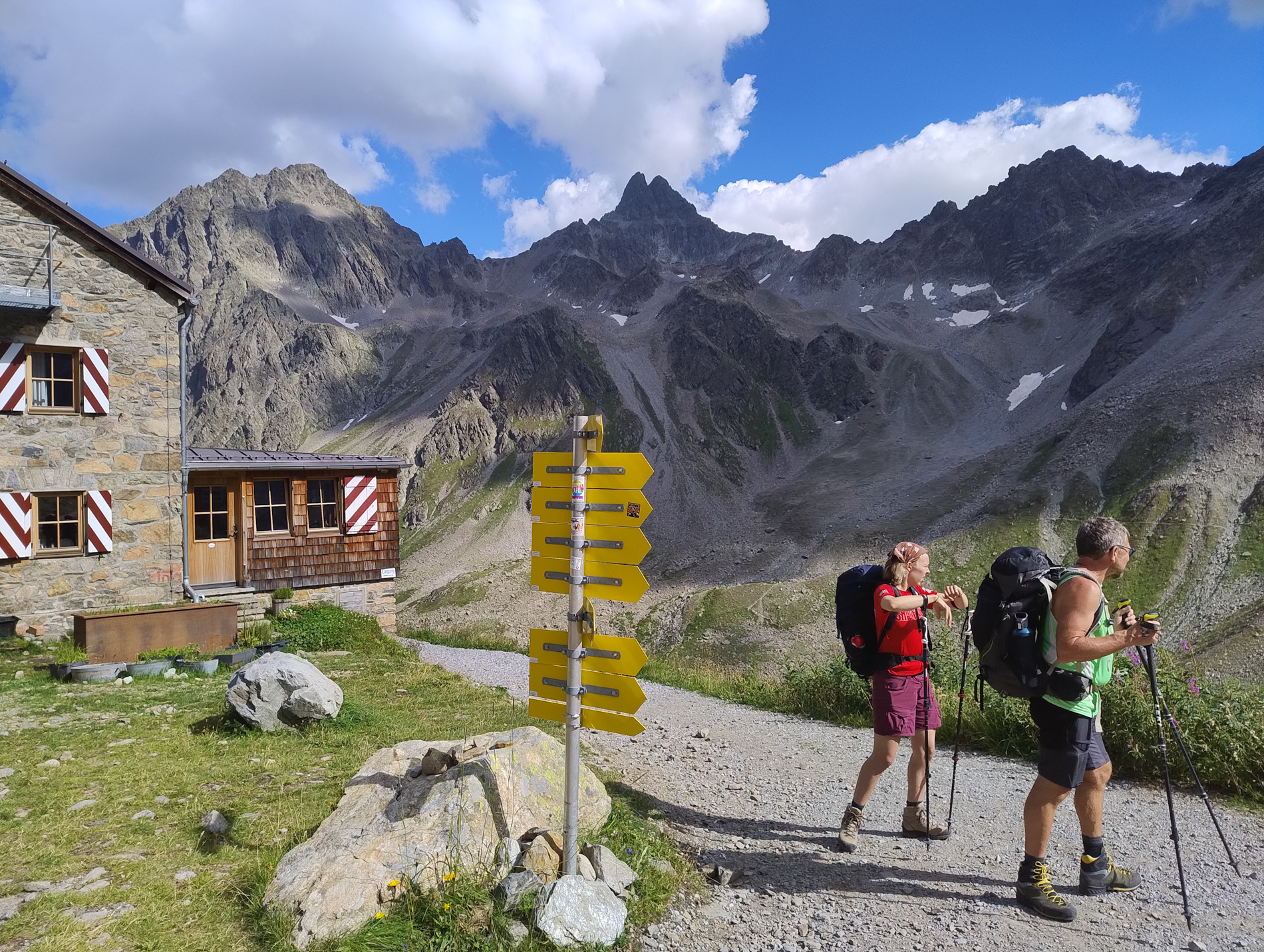 We overnachten in verschillende hutten, elk met een eigen sfeer: een traditionele berghut met uitzicht op de gletsjers, een moderne hut waar ook dagwandelaars langskomen, en een nieuwe hut midden tussen de dennen. Dankzij het dichte huttennetwerk blijven de dagetappes goed te overzien. De Verwall biedt precies wat we zoeken in een bergtocht: afwisseling, uitdaging en momenten van stilte.