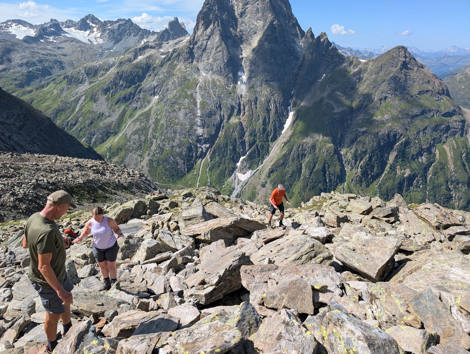 Wanneer de omstandigheden het toelaten, klimmen we naar verschillende toppen. De Vertinesbleiskopf (2706 m) en de Scheibler (2978 m) liggen op onze route, en we maken een dagtocht naar de Hohe Riffler (3168 m). Vanaf de bergkammen hebben we uitzicht op de toppen van de hogere Silvrettagroep en de Patteriol, de toonaangevende berg in de Verwall.