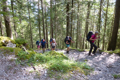 Een huttentocht is een meerdaagse tocht door de bergen, waarbij je overnacht in verschillende berghutten. Deze hutten zijn er in allerlei soorten: van eenvoudige onbemande bivaks tot luxe berghutten. Adembenemend, je trekt van berghut naar berghut en hebt al je spullen op je rug. Je ziet indrukwekkende toppen en geniet optimaal van verschillende vergezichten. Tijdens een huttentocht ontdek je een groter berggebied. Je dompelt je onder in natuur, ruimte en rust. Je beleeft de bergen op hoogte en komt los van de bewoonde wereld. ’s Avonds, wanneer je aankomt in een knusse hut, is het tijd voor een welverdiende maaltijd en een spelletje of drankje met de groep.