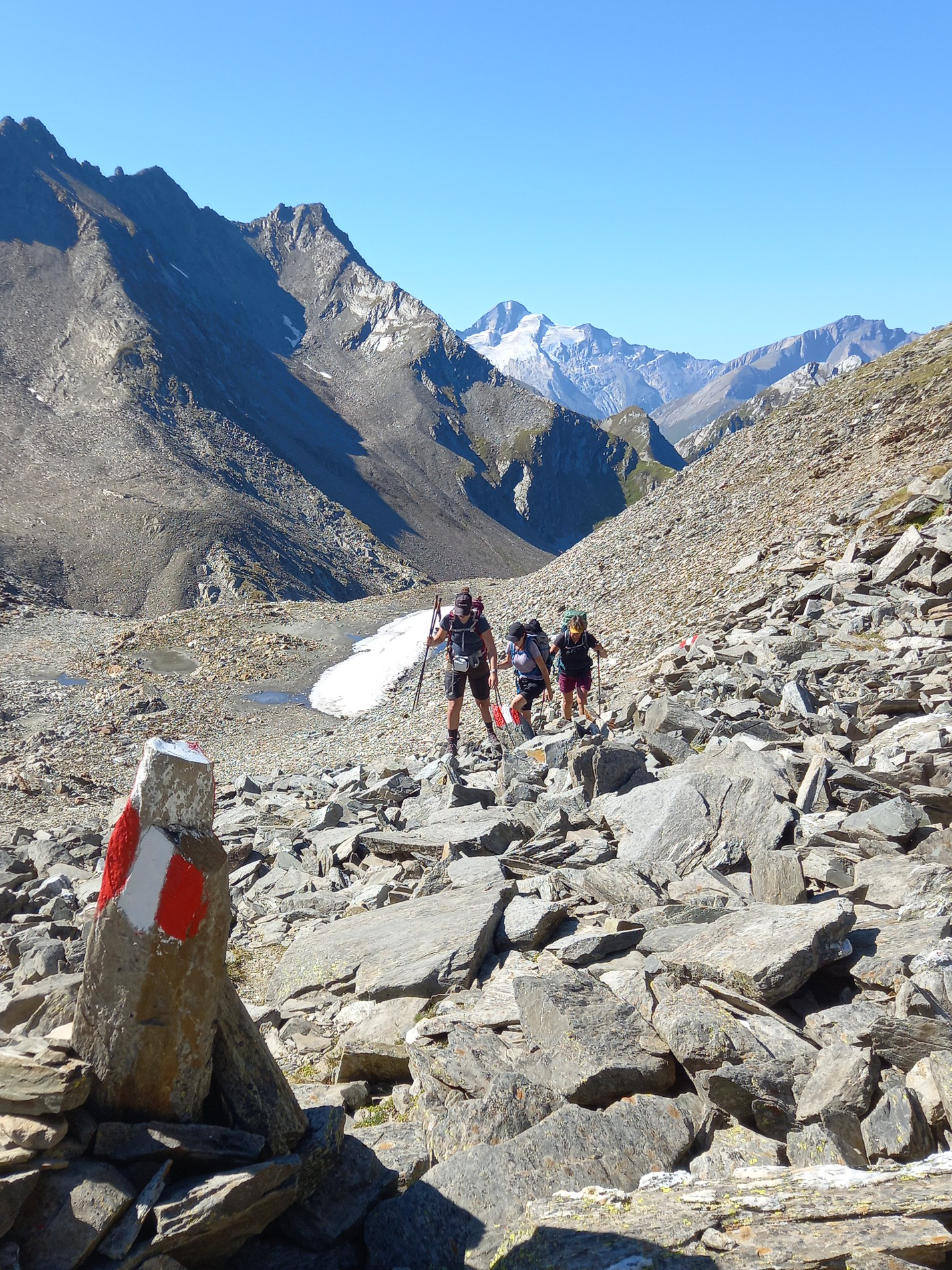 Daarnaast ga je door ongebaand terrein, met regelmatig steile pasovergangen en geëxponeerde passages. Naast tredzekerheid en geen last hebben van hoogtevrees is het belangrijk dat je ervaring hebt met hoogalpiene tochten en/of alpiene basiscursus
