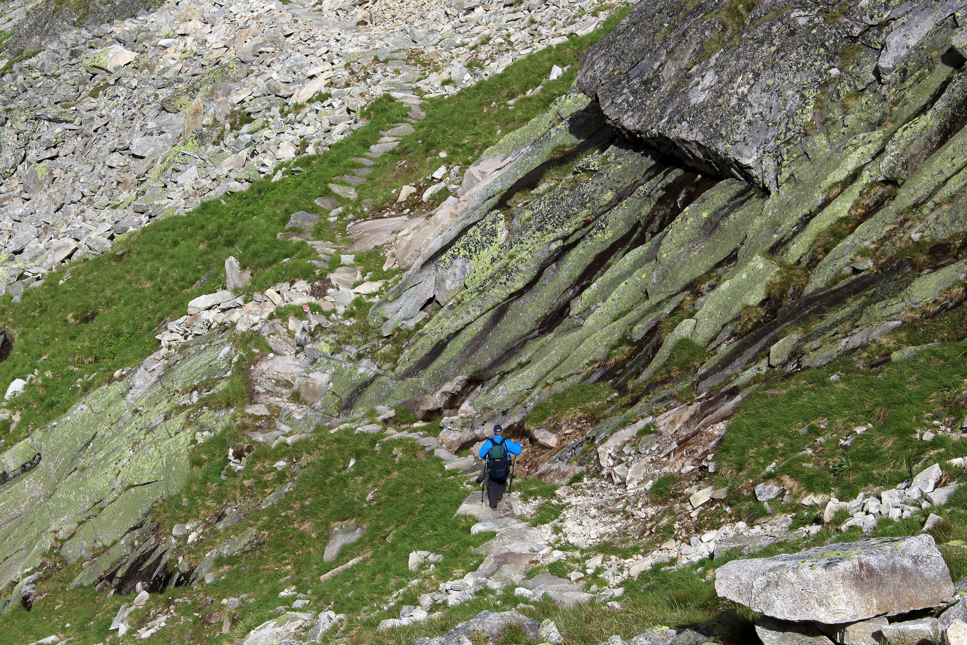 Een technisch eenvoudige huttentocht gaat grotendeels over goed begaanbare bergpaden, maar ongebaand terrein komt ook voor. Ongebaand betekent blokkenterrein (losse rotsplaten), een gruishelling of sneeuwveld. Soms loop je langs steile afgronden en een enkele keer heb je je handen nodig voor een rotsige passage. Lastige stukken in de tocht zijn meestal goed beveiligd (bijv. met staalkabel of trap).