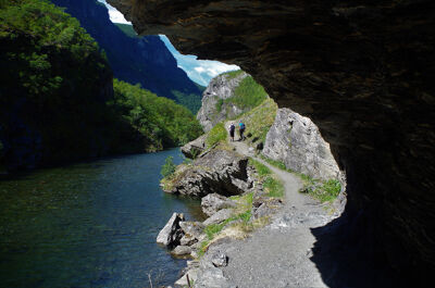 Het Aurlandsdal in Skarvheimen is een indrukwekkend bergdal dat de Noren niet voor niets ‘het dal der dalen’ noemen. Ooit was dit de belangrijkste handelsroute tussen Oost- en West-Noorwegen, nu is het een van de historische wandelroutes van het land. Wie lopen langs een wilde rivier die zich een weg snijd door een smalle kloof, terwijl je onderweg steeds uitzicht hebt op het fjord ver beneden.