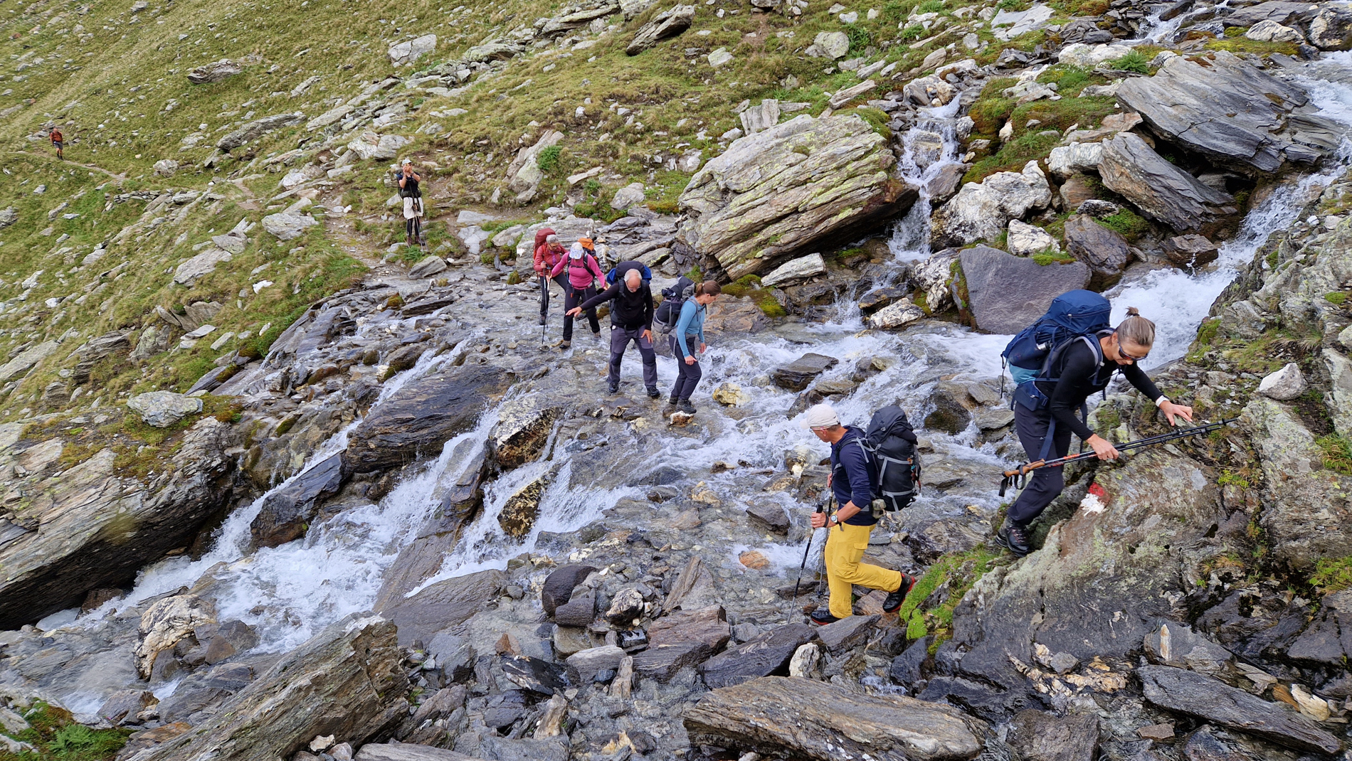 Tijdens deze huttentocht volg je niet alleen goed begaanbare bergpaden, maar loop je ook door ongebaand terrein. Dit kan bestaan uit blokkenterrein, rotsplaten of steile gruis- en grashellingen. Het moeten oversteken van steile sneeuwvelden kan eveneens voorkomen. Daarnaast kunnen eenvoudige klimpassages (UIAA I) van enkele meters voorkomen