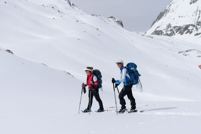 Het lopen met sneeuwschoenen kost meer kracht en energie dan bergwandelen in de zomer. Het is belangrijk dat je een uitstekende conditie hebt.