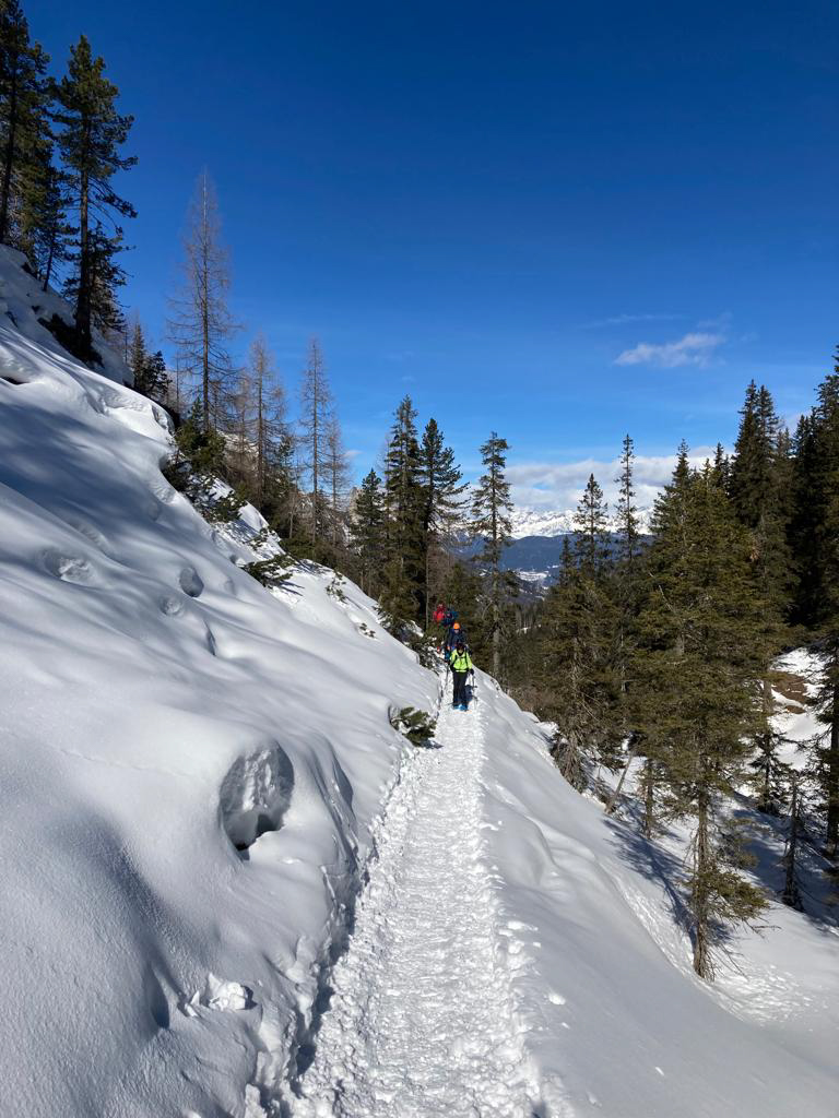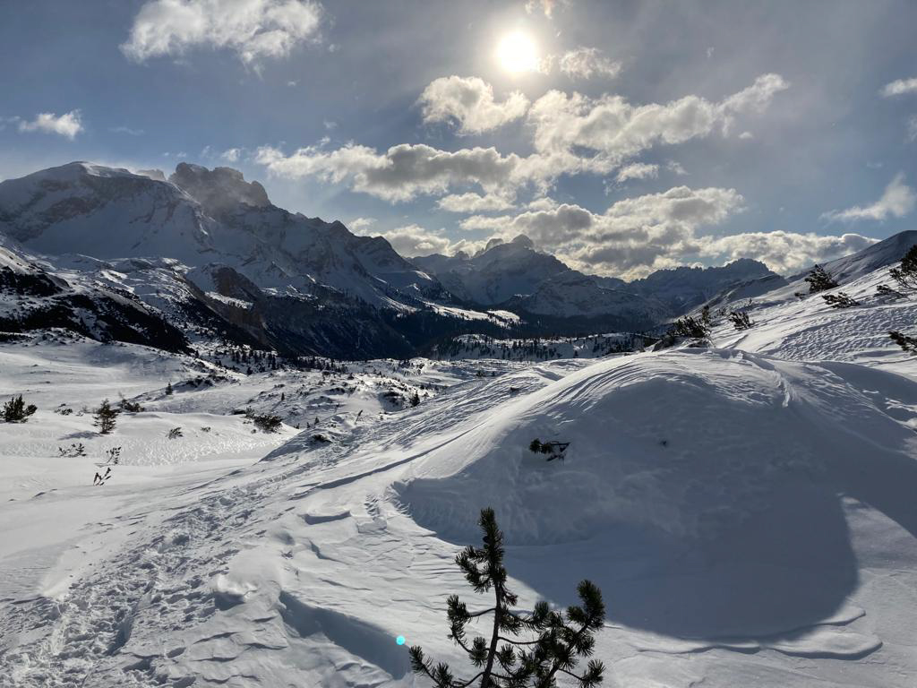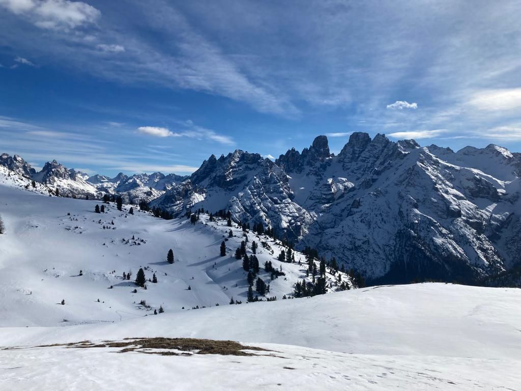 Tijdens deze doorsteek word je omringd door imposante pieken en kalkwanden. In de winter komen deze extra goed tot hun recht, omdat ze sterk contrasteren met het witte sneeuwdek en de blauwe lucht. Lieflijke glooiende hoogvlaktes worden afgewisseld met soms wat steilere passages. Het gaat om een echte doorsteek, we eindigen op een andere plek dan we zijn gestart. De hutten die we onderweg tegenkomen hebben allemaal een geheel eigen karakter: soms bevinden we ons in een typische Süd-Tiroler ambiance en dan weer juist in een duidelijk Italiaanse sfeer. Het zijn hoe dan ook comfortabele onderkomens, waar je kunt genieten van een warme douche en heerlijk eten.