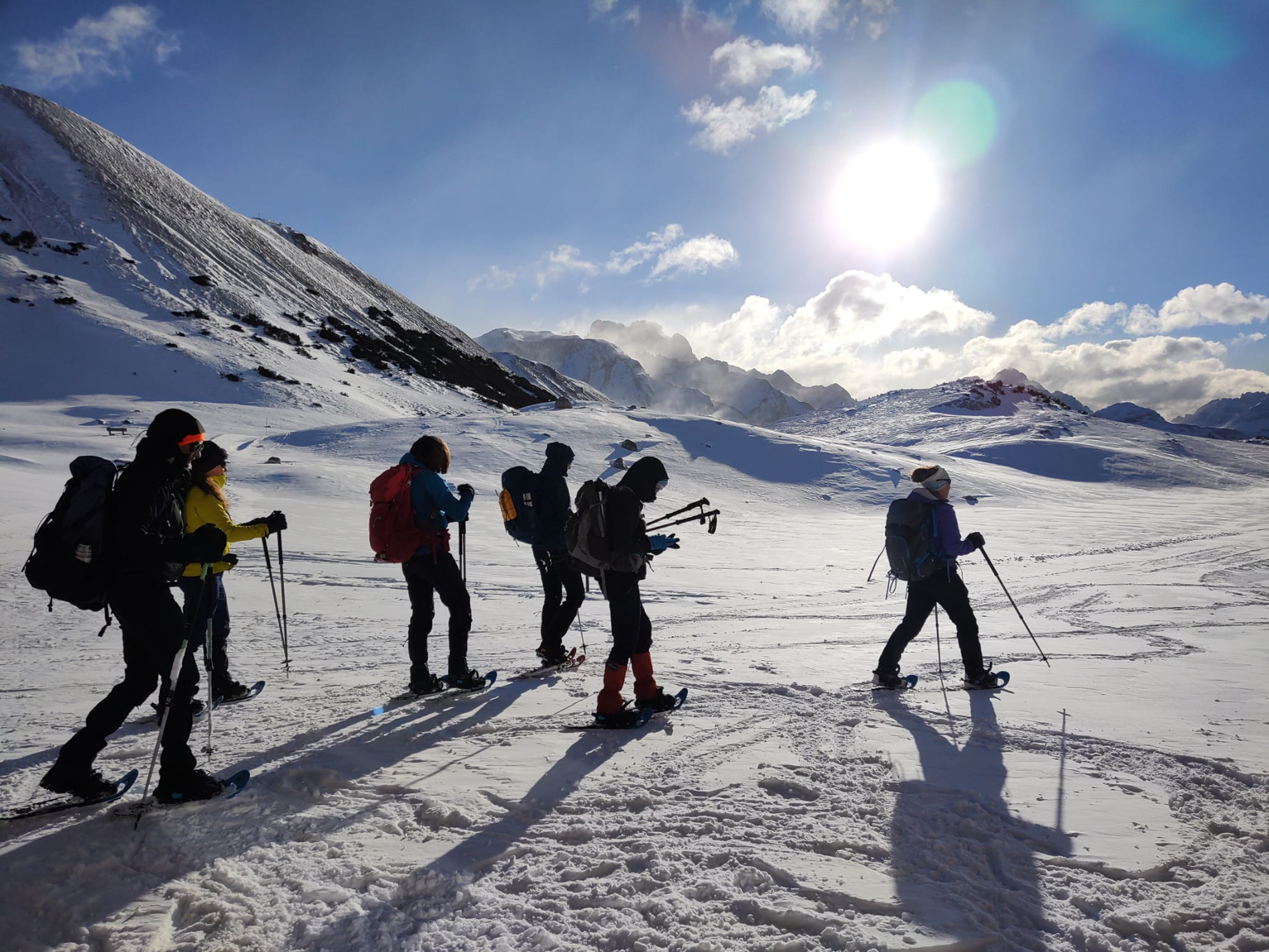 Het lopen met sneeuwschoenen kost meer kracht en energie dan bergwandelen in de zomer. Het is belangrijk dat je een uitstekende conditie hebt.
