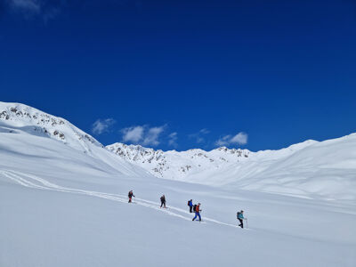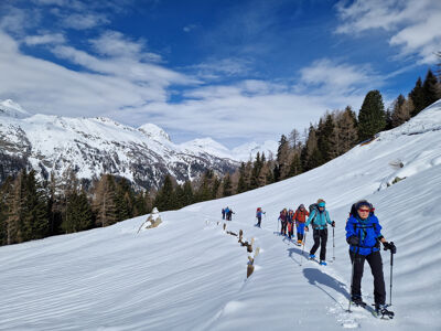 De Grisons is een interessant gebied voor sneeuwschoenwandelaars. We starten in het dal van Poschiavo, net onder de Bernina pas. Hier is weinig tot geen skitoerisme en we verblijven drie nachten in ons eigen comfortabele berghuis, waar we ook zelf zullen koken. De mountain leader coördineert dit en doet inkopen. Vervolgens doen we twee hutten aan op de grens van Zwitserland en Italië. In elke hut blijven we twee nachten. Bij goede omstandigheden kunnen we een aantal hoge passen en toppen beklimmen!