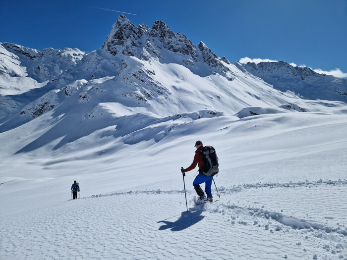 Het lopen met sneeuwschoenen kost meer kracht en energie dan bergwandelen in de zomer. Het is belangrijk dat je een uitstekende conditie hebt.