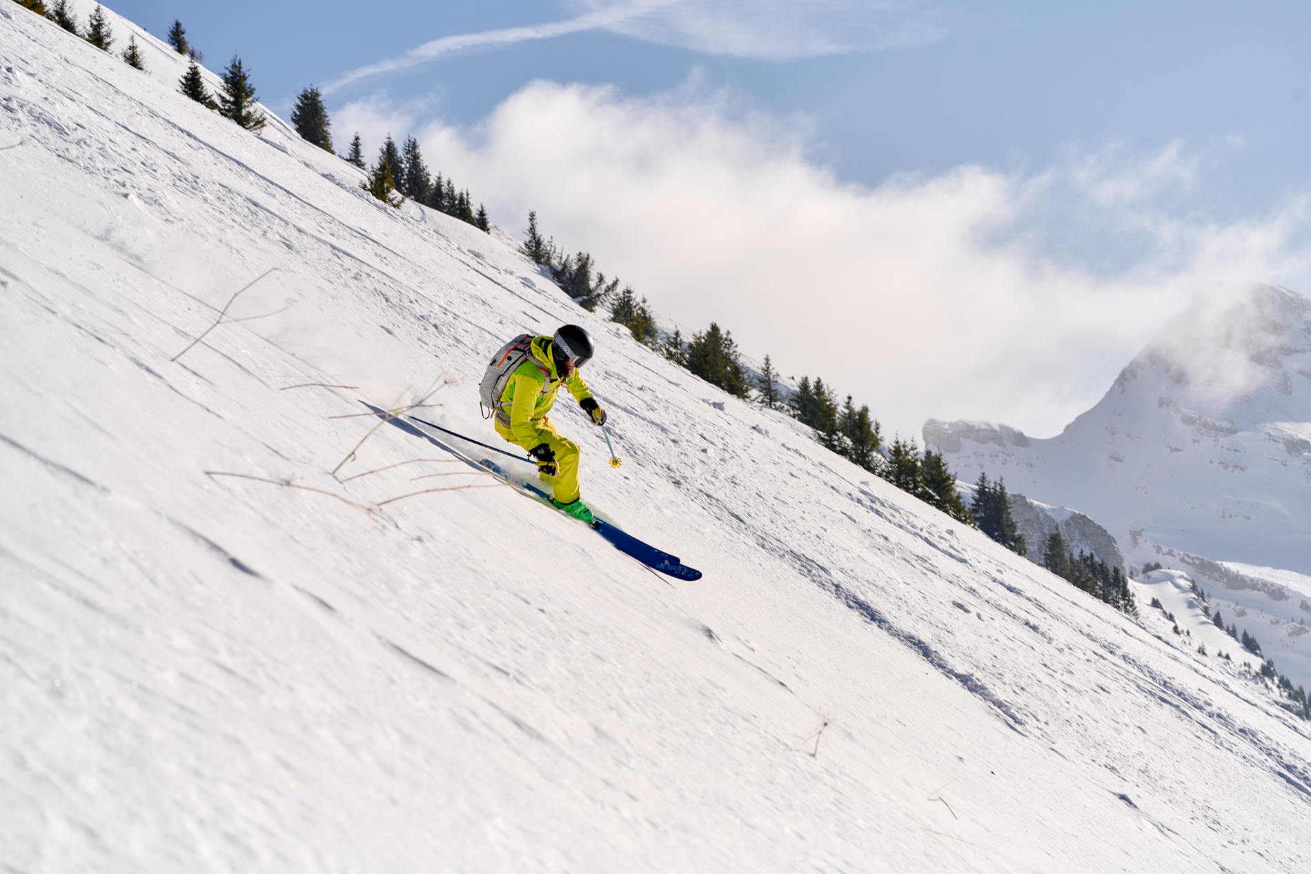 All-mountainski’s, freerideski’s met toerenbinding en skistoppers alsook stijgvellen. De Materialen moeten goed afgesteld en passend zijn. Advies: breedte freeride ski's vanaf 90 mm onder de binding. Liefst een beetje meer.