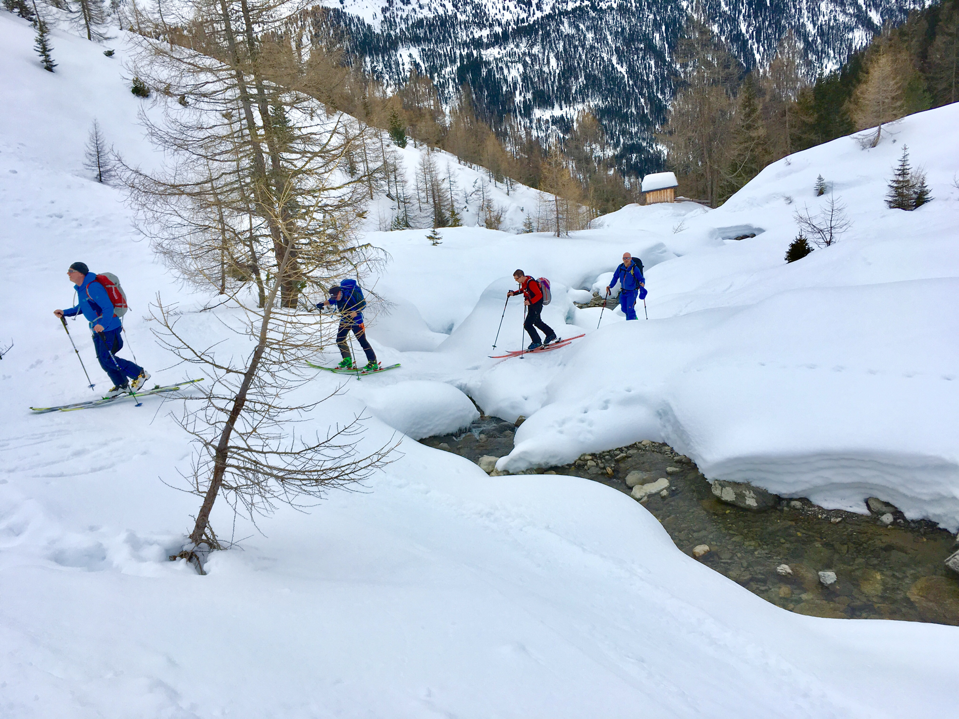 Moderne toerski’s, toerenbinding met skistoppers, stijgvellen, harschijzers en skistokken. Materialen moeten goed afgesteld en passend zijn. Advies breedte toerski’s 90-100 mm onder de binding.