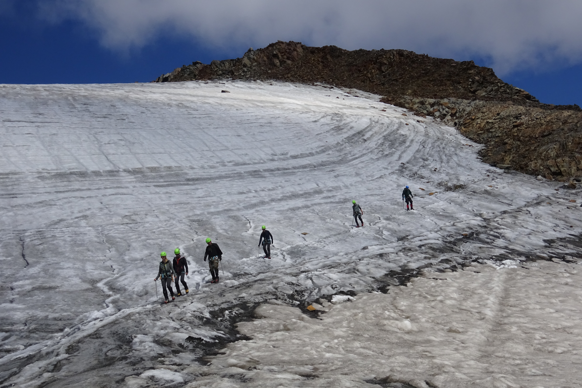 Halverwege de week volgt de oversteek via de Gurlergletsjer naar het hoger gelegen Ramolhaus (3006 m). Hier wordt toegewerkt naar het sluitstuk van de cursus: een graatbeklimming naar de top van de Noordelijke Ramolkogl (3428 m), bereikbaar via de Ramolgletsjer.