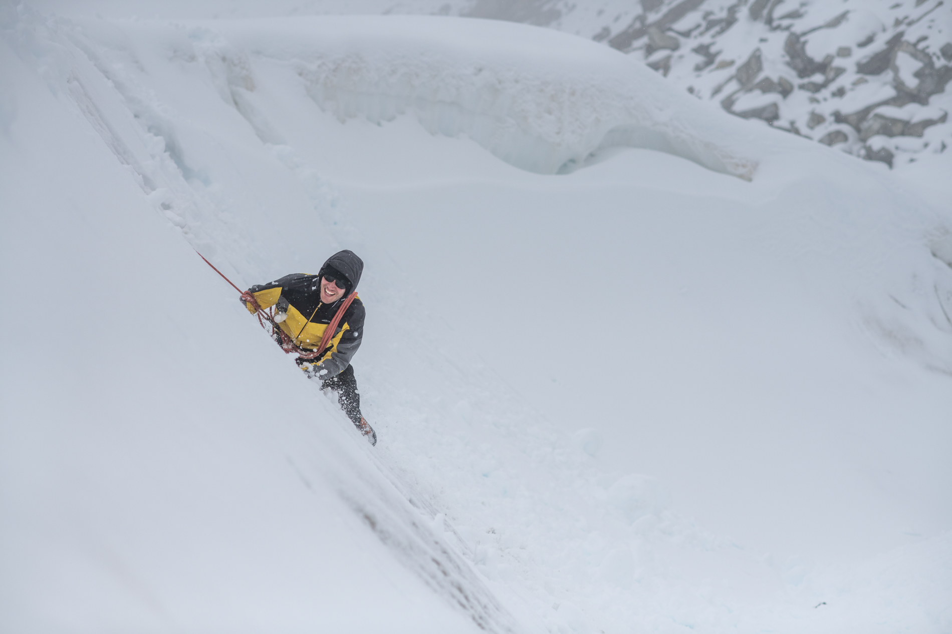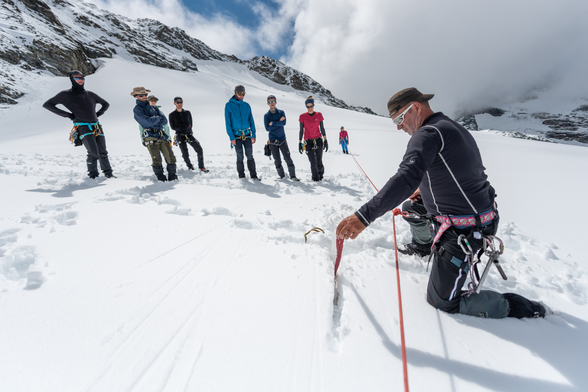 De derde dag is volledig gewijd aan technieken op de gletsjer, met aandacht voor het gebruik van stijgijzers en pickel, en het gaan aan touw in een gletsjergroep.