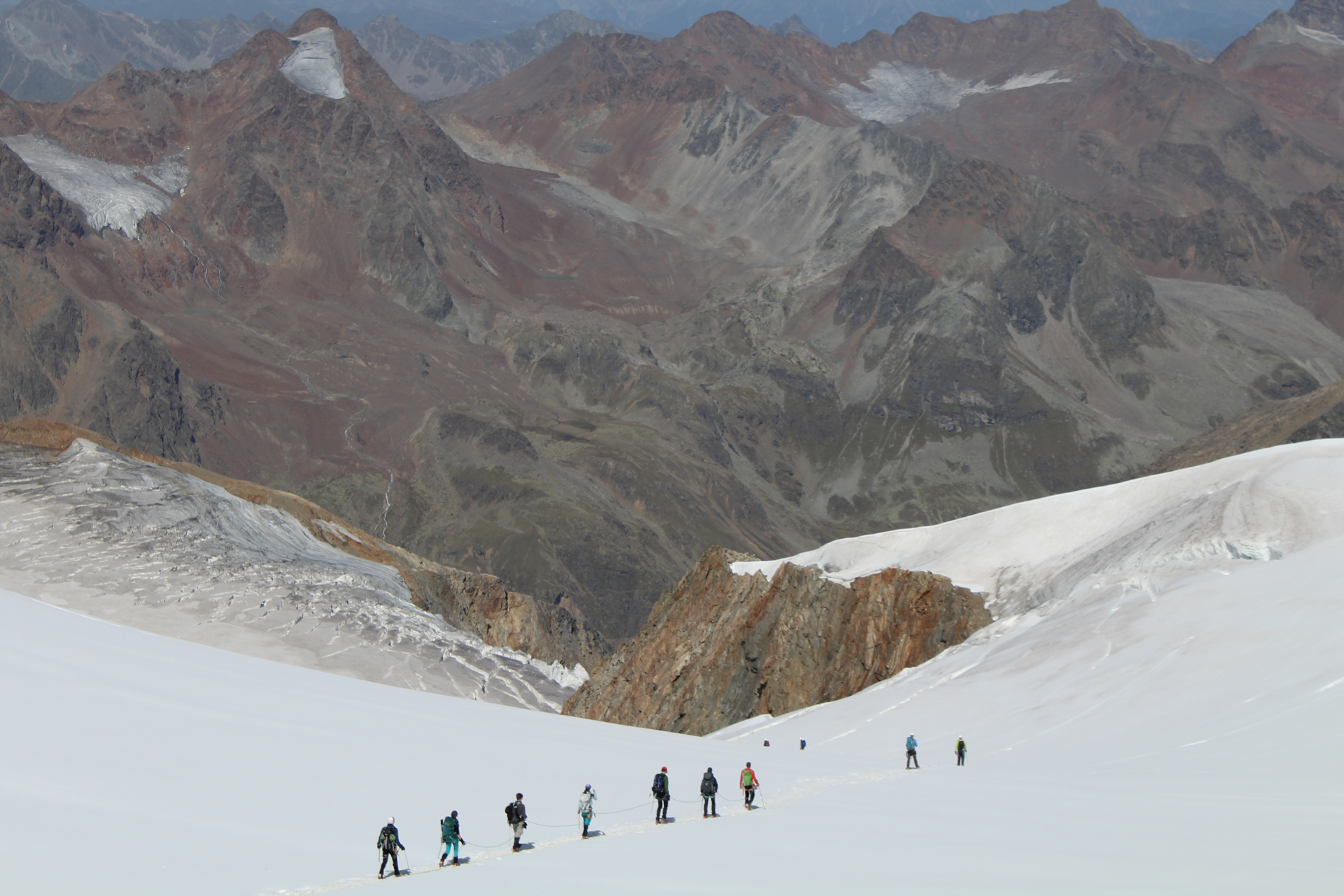 De Ötztaler Alpen vormen een van de meest vergletsjerde gebieden van de Oost-Alpen en bieden een ideaal terrein voor een basiscursus sneeuw en ijs. Tijdens deze cursus komen de belangrijkste basisvaardigheden van het alpinisme aan bod, zoals touw- en reddingstechnieken, stijgijzergebruik en het aan touw gaan op de gletsjer. De route voert van de Langtalereckhütte (2450 m) naar het Ramolhaus (3006 m).