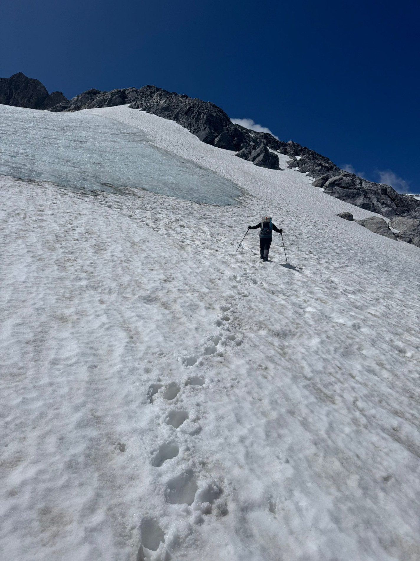 We starten in het Rijndal. Vanuit Disentis brengt een stoeltjeslift ons naar ruim 1800 meter, het begin van de tocht. Daarna volgen meerdere lange dagen met flinke hoogtemeters en prachtige gletsjers oversteken. Het terrein varieert: platen, blokken, steile passages met kettingen en staalkabels. Een goede conditie is nodig, net als ervaring in alpien terrein en het goed kunnen lopen op stijgijzers.