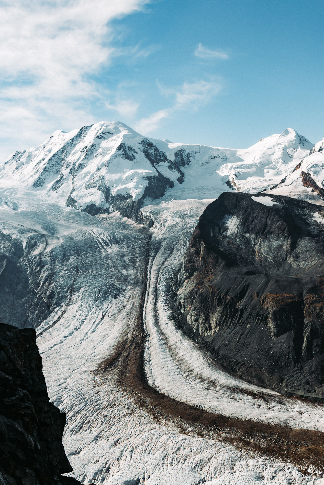 De Matterhorn markeert de grens tussen Zwitserland en Italië, midden in het kanton Wallis. De Giro del Monte Cervino, rondom de Matterhorn, is een klassieker in de West-Alpen. Niet alleen vanwege die iconische top, maar ook door het afwisselende terrein en de gletsjers die je onderweg tegenkomt.