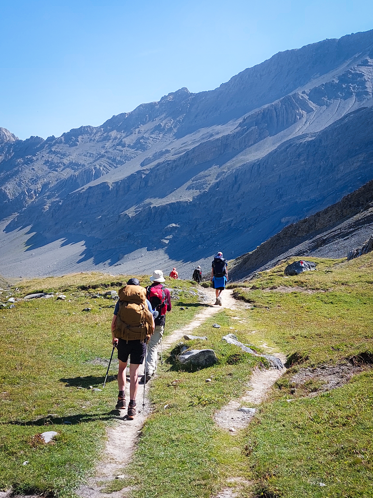 Wanneer je de kaart raadpleegt, ontvouwt zich een logische reisroute langs de Alpes Vaudoises en het westelijke Berner Oberland. Het uitzicht is spectaculair; je kijkt over het Rhônedal naar de hoogste toppen van de Alpen. Onderweg loop je over gevarieerd terrein, afwisselend kom je over groene weides, rotsachtige paden met een enkele klauterpassage, langs meertjes, machtige toppen en gletsjers.