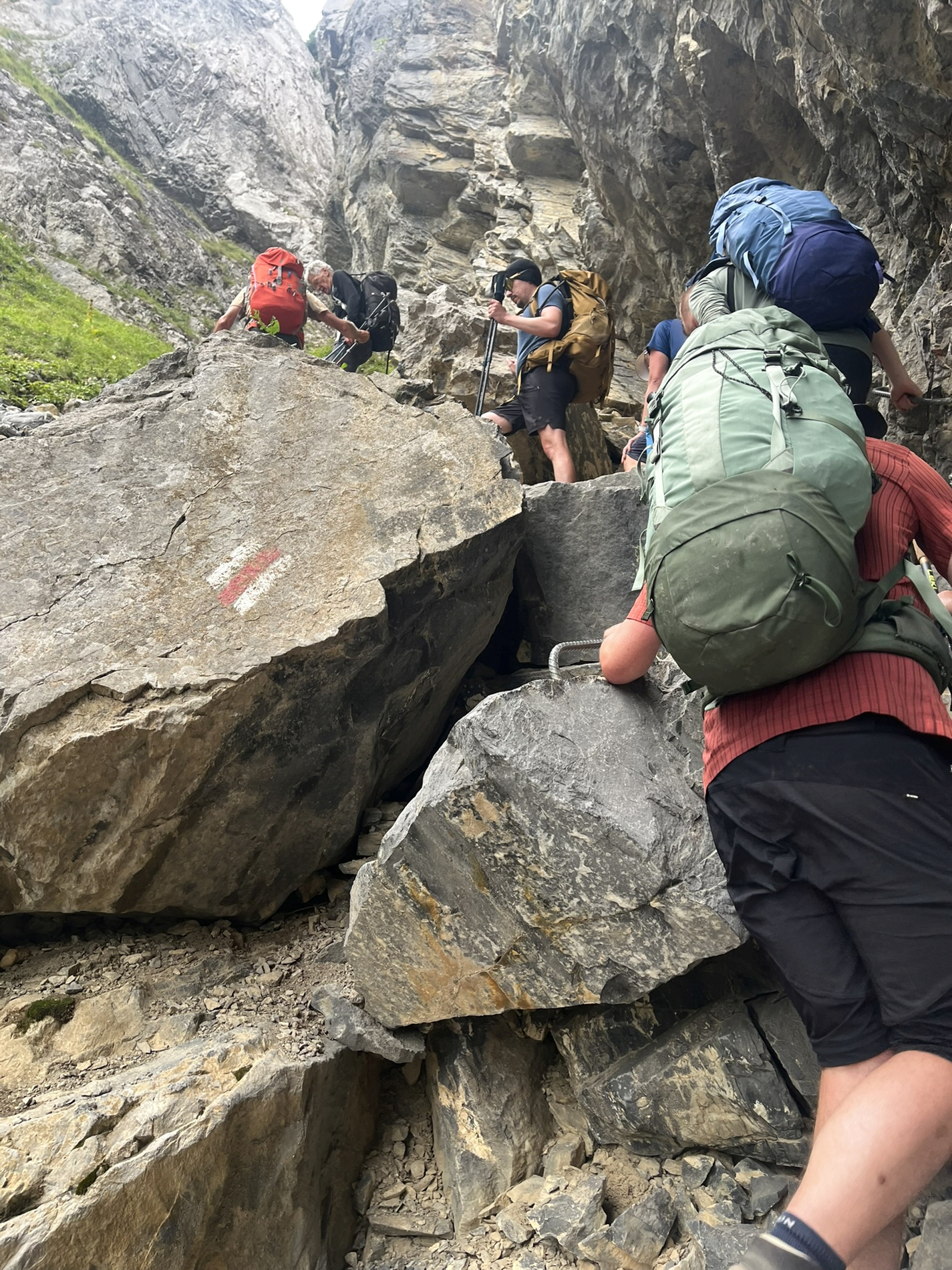 Tijdens deze huttentocht volg je niet alleen goed begaanbare bergpaden, maar loop je ook regelmatig door ongebaand terrein. Dit kan bestaan uit blokkenterrein, rotsplaten of steile gruishellingen. Ook het oversteken van een sneeuwveld kan voorkomen tijdens de tocht. Je loopt regelmatig langs steile afgronden. Lastige stukken zijn meestal goed beveiligd, bijvoorbeeld met staalkabels of trap. Een enkele keer heb je je handen nodig voor een rotsige passage.