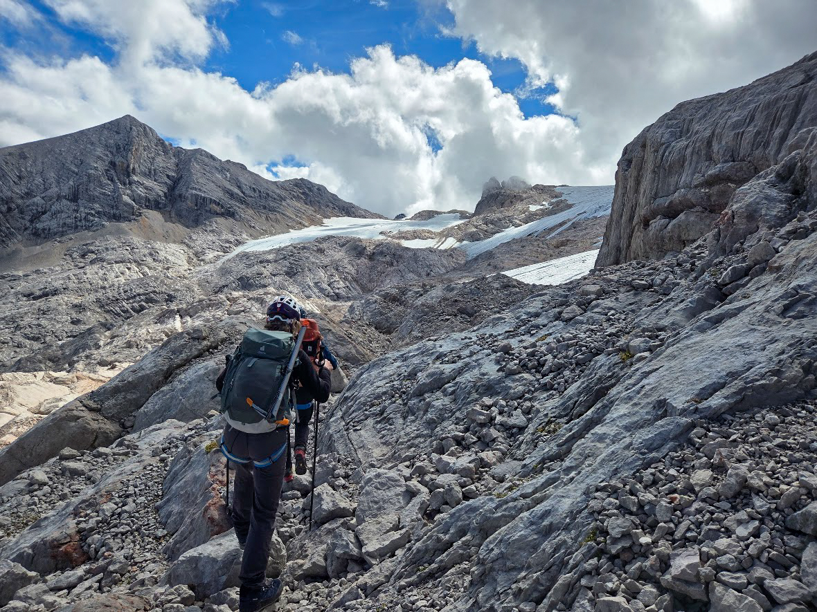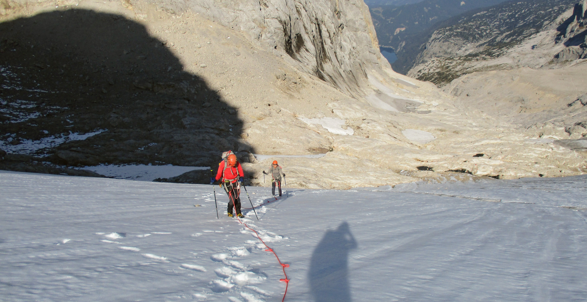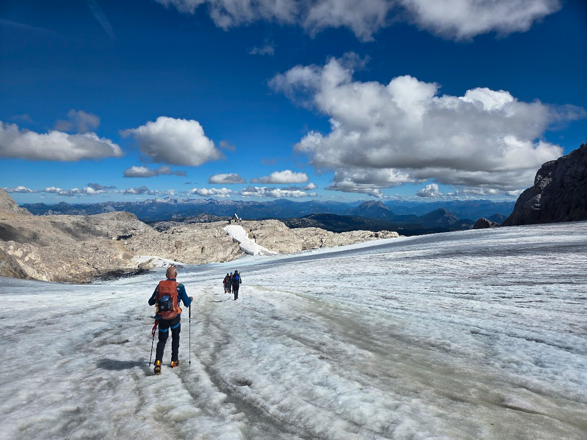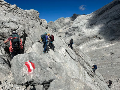 De Dachstein-Runde is een hoogalpiene tocht met enkele klettersteigs onderweg. Bij goed weer beklimmen we de Schöberl en nemen we de Ramsauer klettersteig. Naast de klettersteigset gaan ook stijgijzers mee, want als het zicht goed is, trekken we over de restanten van de Hallstätter- en Schladminger gletsjers.