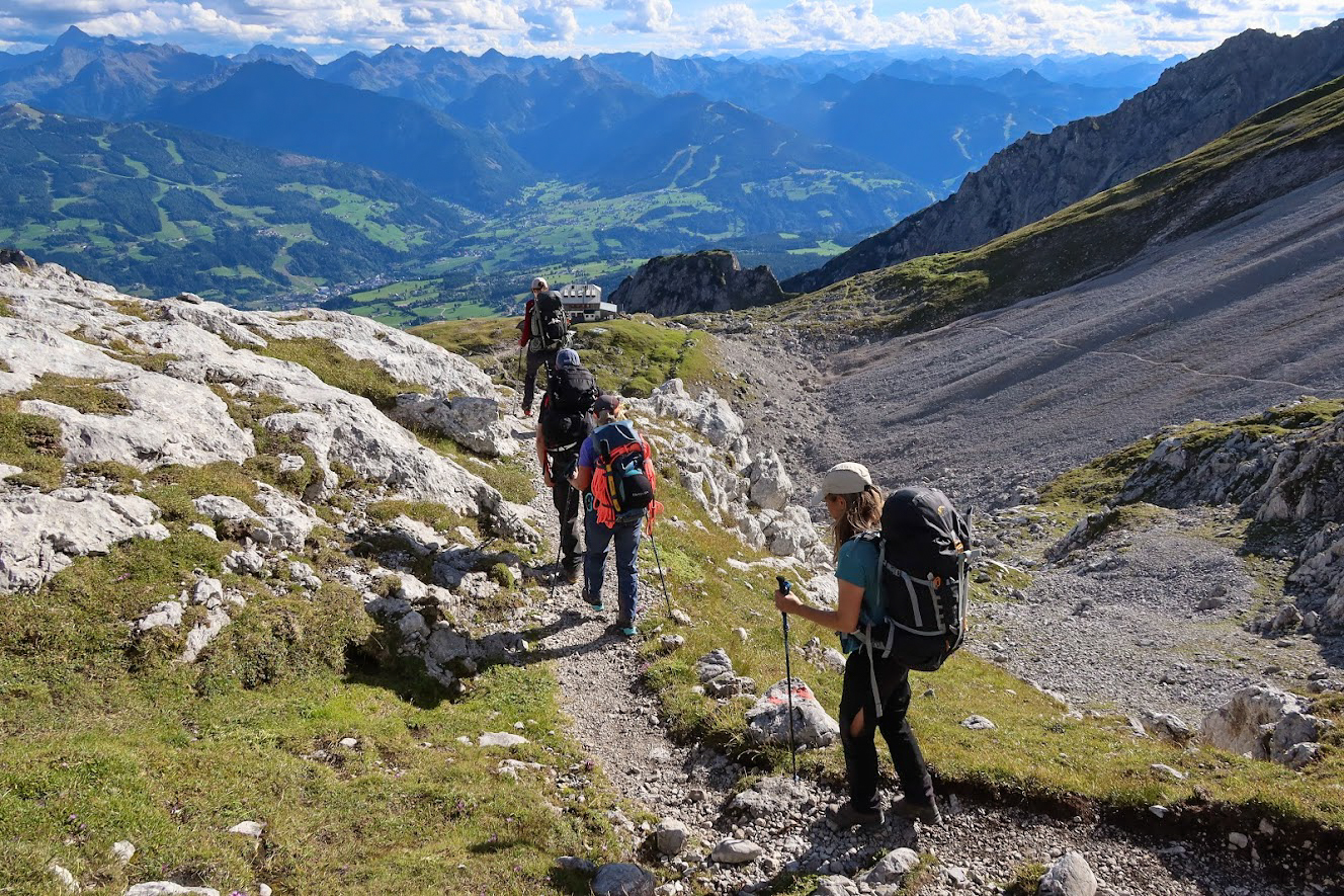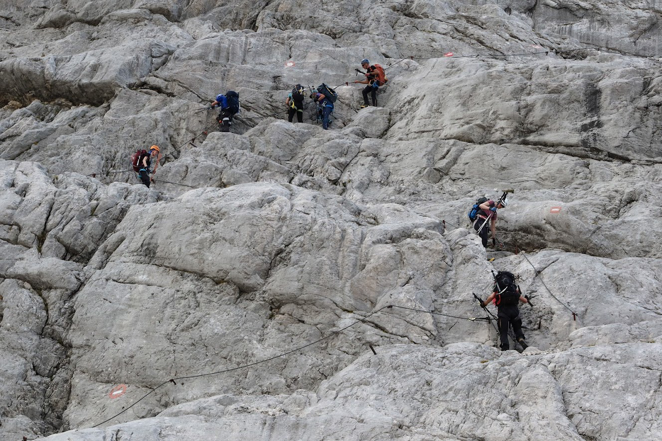 Voor deze tocht heb je een goede conditie nodig en ervaring met huttentochten. Het grootste deel voert door technisch terrein: blokken, gladde platen, passages waar je ook bij slecht weer zeker moet staan. De klettersteigs zijn niet extreem, variërend van A/B tot C. Op de voorlaatste dag doen we de Ramsauer Klettersteig. Daar klauteren we over de Ramsauergraat en tikken we top na top aan.