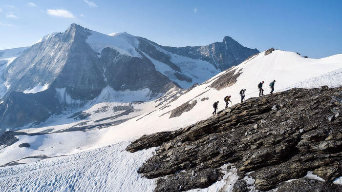 De uitdagendste basiscursus in ons programma. Heb jij de conditie van een marinier en stalen zenuwen? Mooi, want de alpiene basiscursus in het Zwitserse Wallis is de uitdagendste alpiene cursus voor beginners. Het gebied is beroemd om zijn vierduizenders, en ook al beklim je die deze week niet, het maakt wel dat je omgeving bestaat uit rotsen, sneeuw en ijs zo ver je kunt kijken.