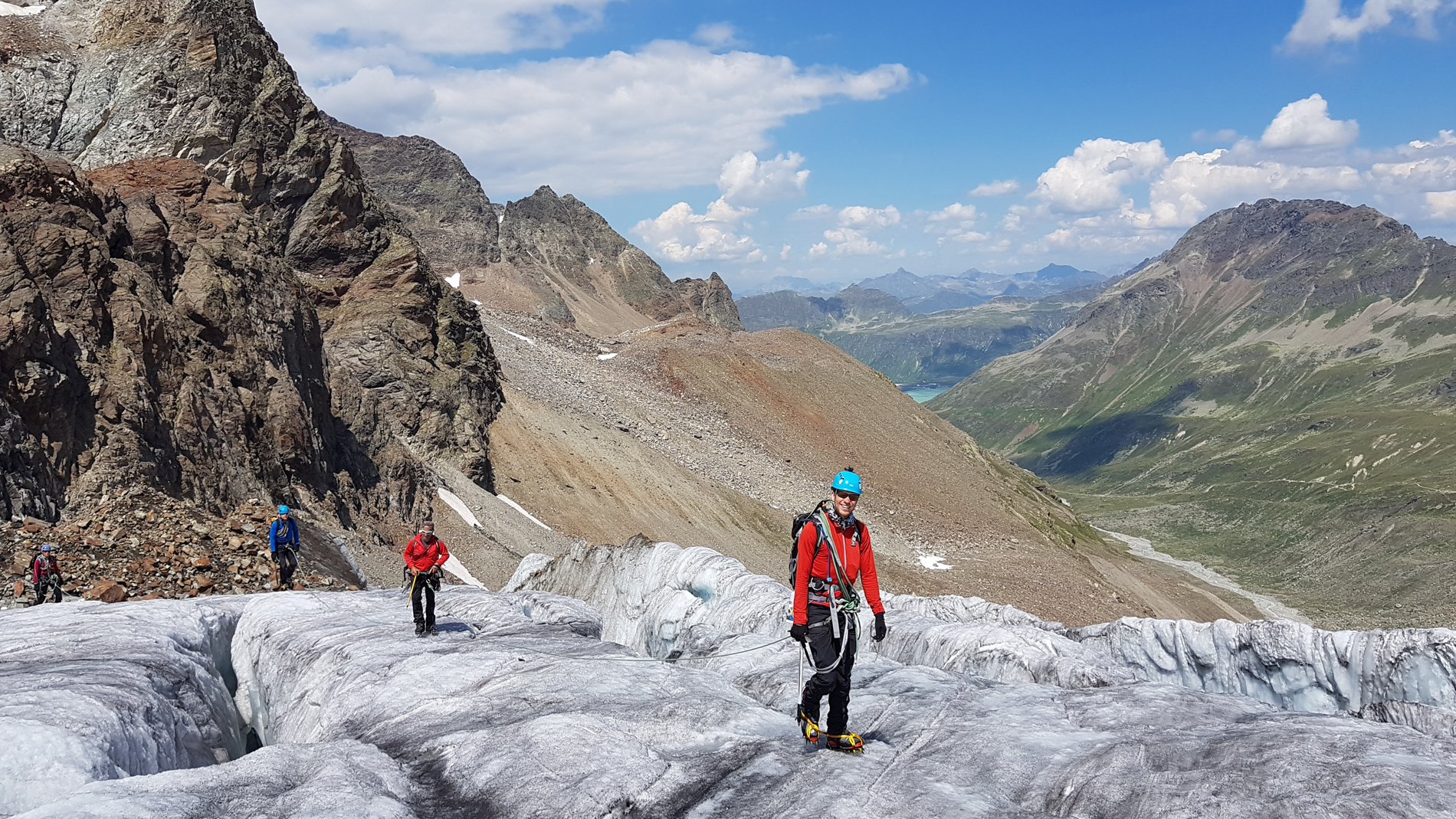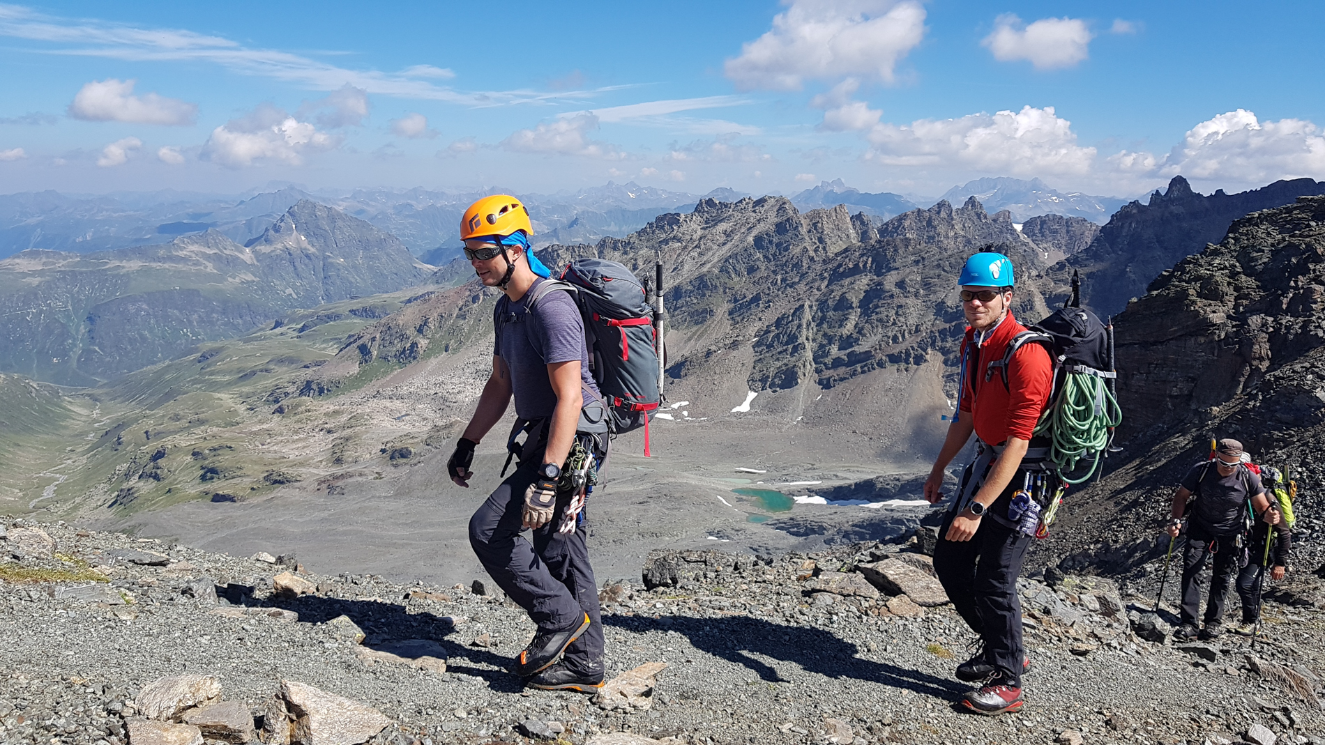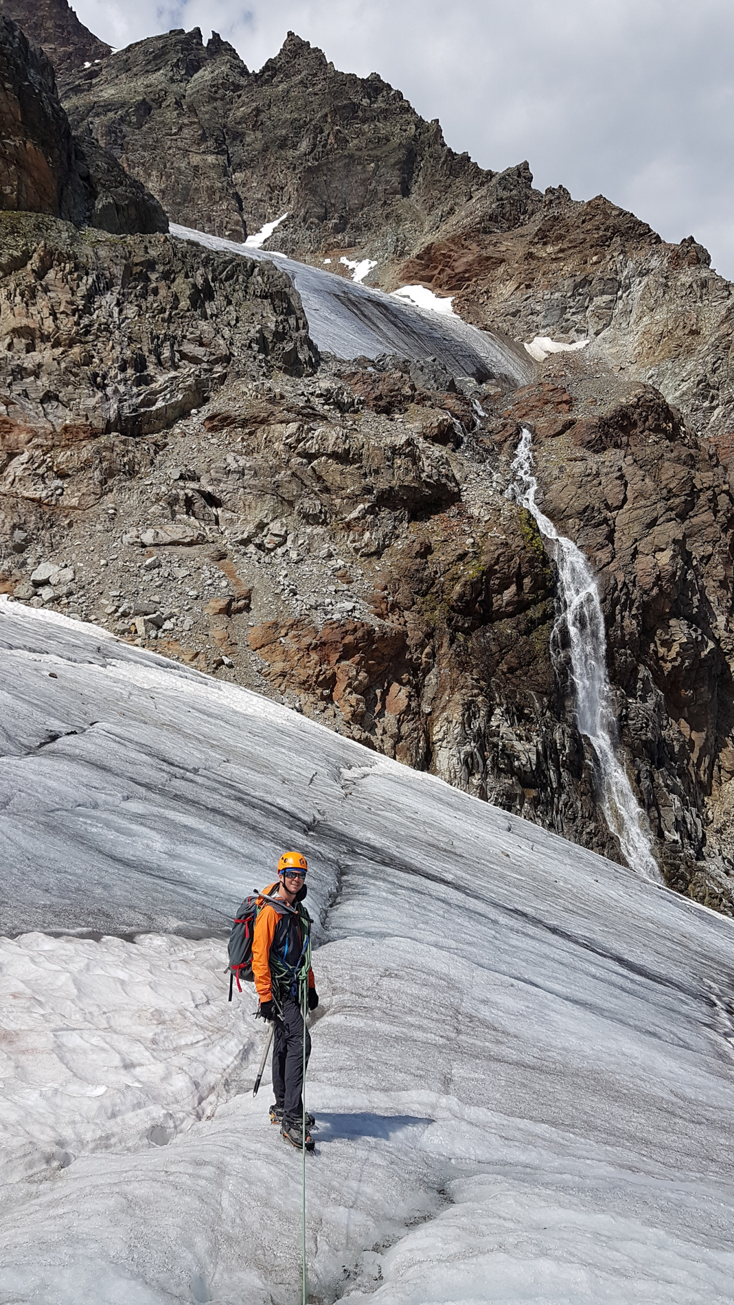 Op de Ochsentaler gletsjer oefen je stijgtechniek in stijl ijs en perfectioneer je reddingstechnieken in het spletenlabyrint op weg naar het gletsjerplateau. Daarna beklim je via twee steile ijswanden de Signalhorn (3210 m) en steek je over naar de Tuoi Hütte via een imposante rotsgraat.