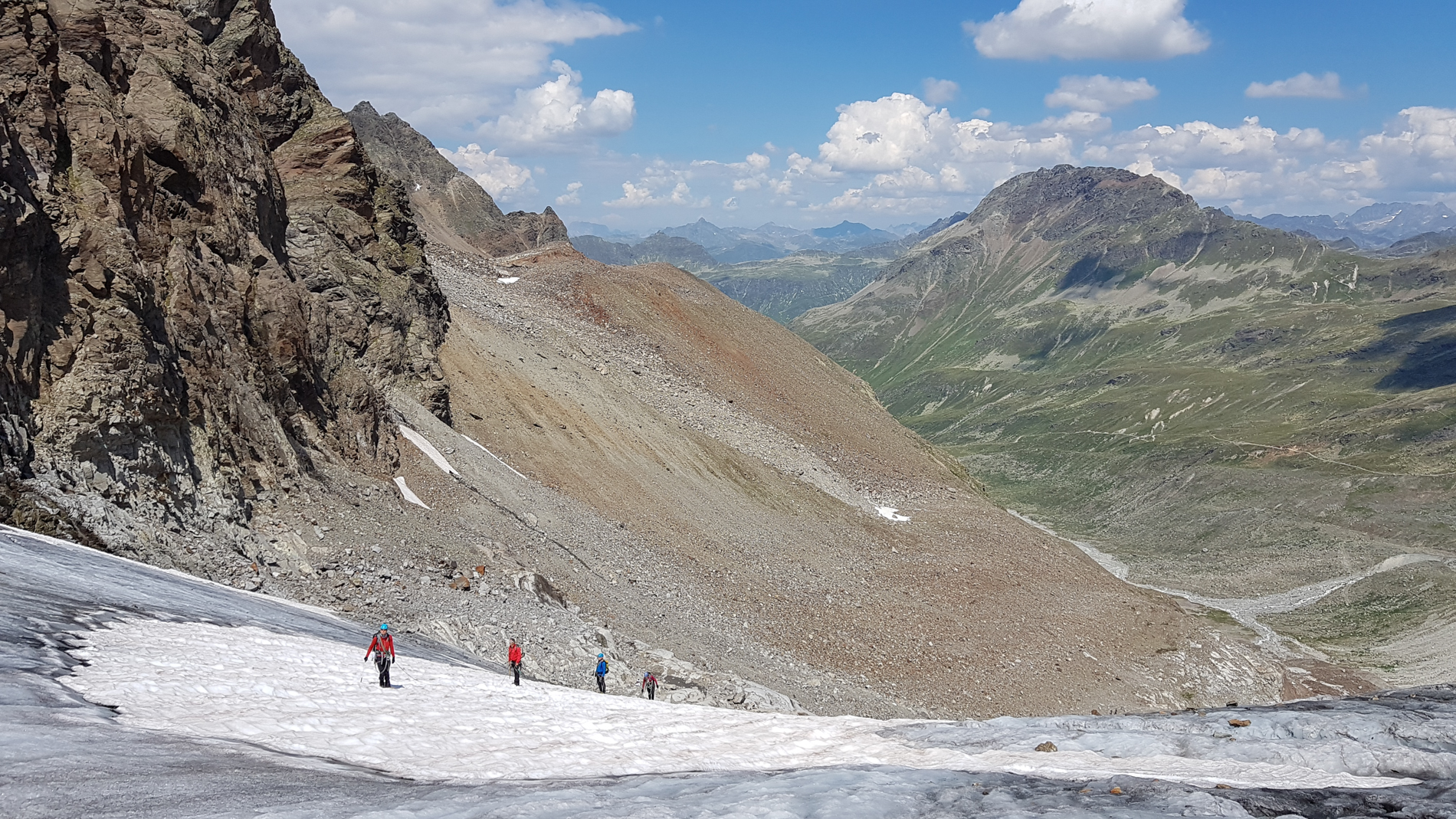 De week sluit je af met de weinig beklommen westgraat van de Dreiländerspitze (3196 m), vanaf de Vermuntpas (2796 m). Via de normaalweg dalen we af naar de Ochsenscharte en keren over de Jamtalgletsjer terug naar de Jamtalhütte, waar de cursus begon.