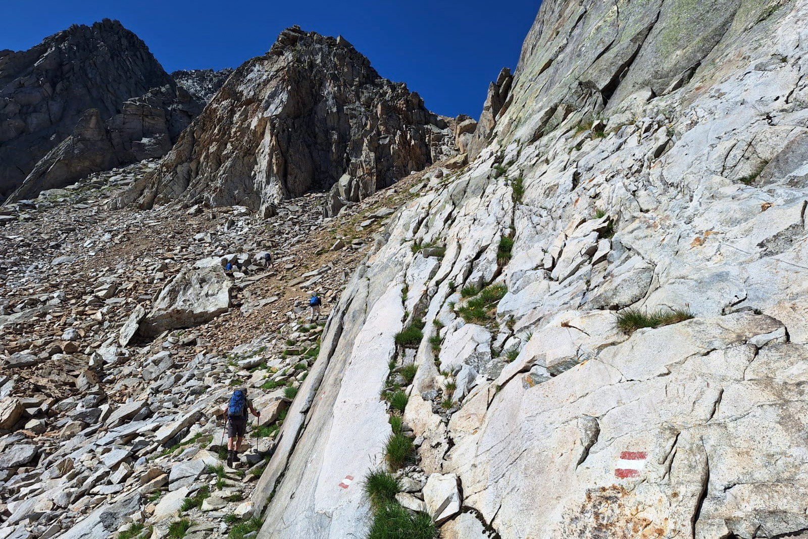 Tijdens deze huttentocht volg je niet alleen goed begaanbare bergpaden, maar loop je ook regelmatig door ongebaand terrein. Dit kan bestaan uit blokkenterrein, rotsplaten of steile gruishellingen. Ook het oversteken van een sneeuwveld kan voorkomen tijdens de tocht. Je loopt regelmatig langs steile afgronden. Lastige stukken zijn meestal goed beveiligd, bijvoorbeeld met staalkabels of trap. Een enkele keer heb je je handen nodig voor een rotsige passage.