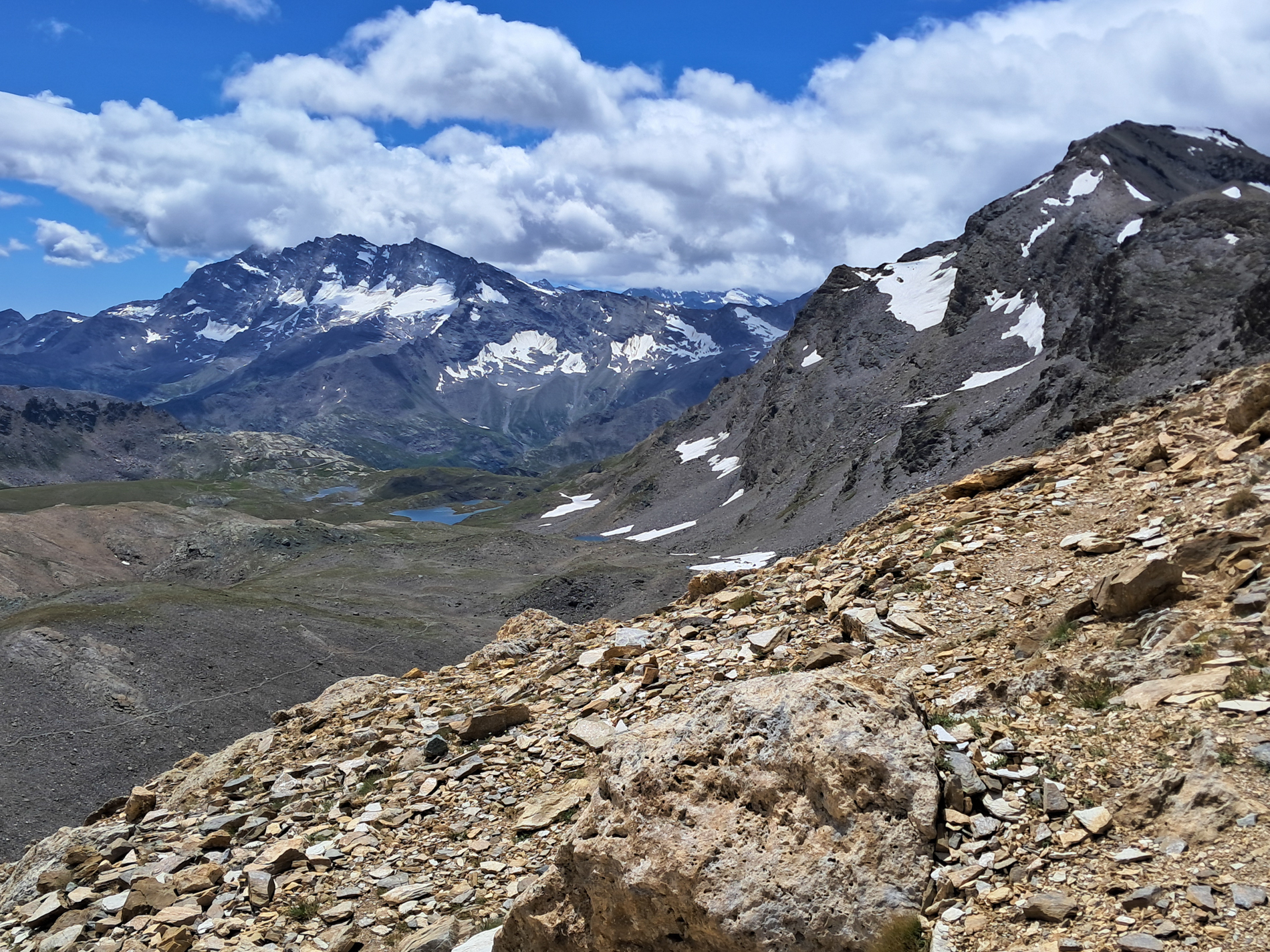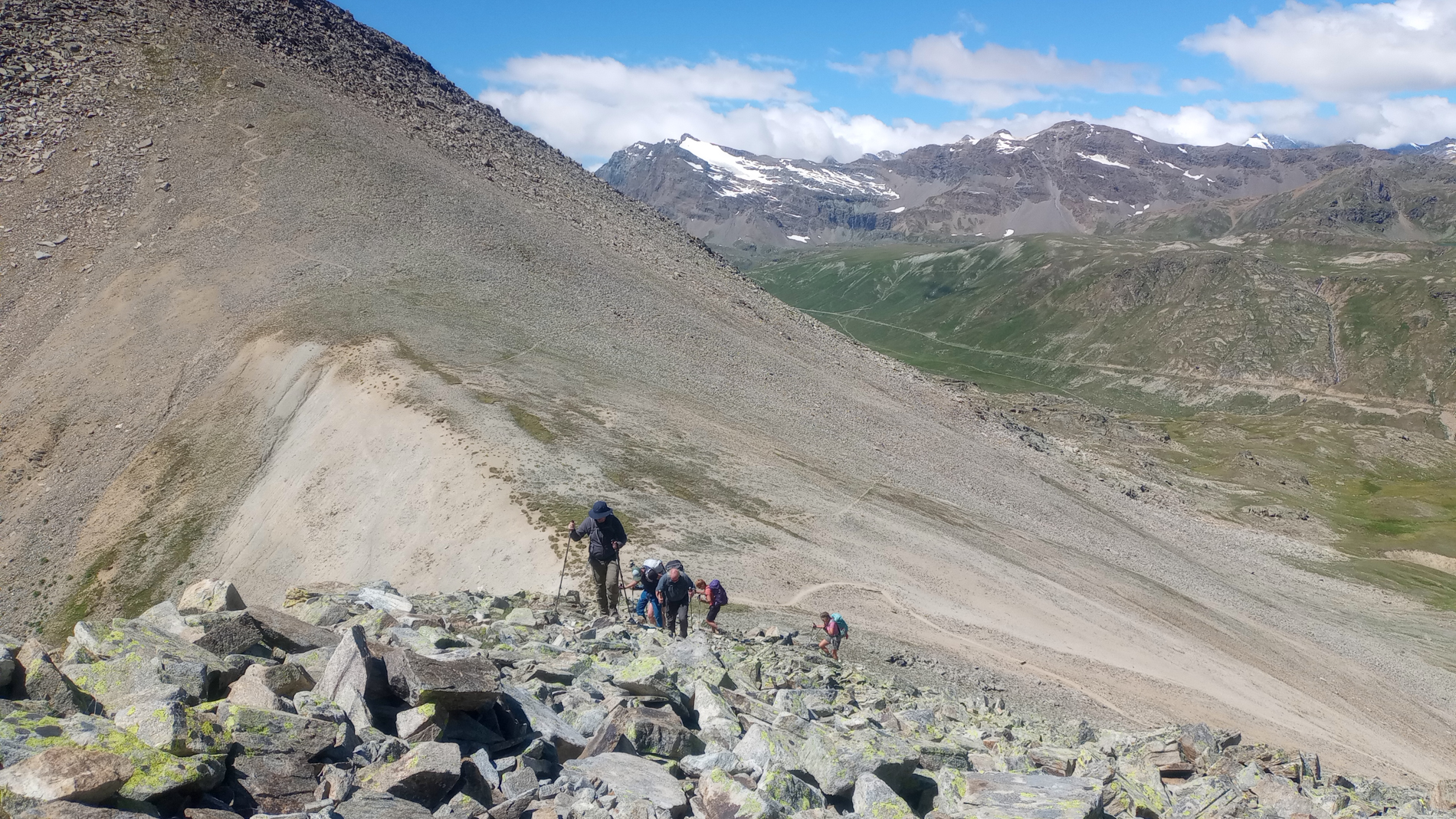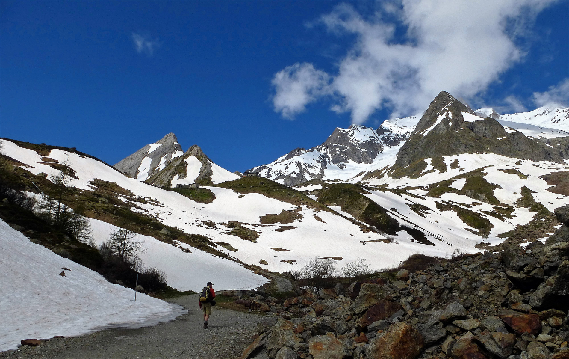 De route loopt dwars door het park, van west naar oost. Onderweg steken we twee bergruggen over: het Valgrisenche- en het Gran Paradiso-massief. We kruisen de dalen Val di Rhêmes en Val Savarenche en maken daarbij flink wat hoogtemeters.In de vroege zomer staan de dalen vol bloemen. Over het algemeen is de tocht technisch niet moeilijk, met goed begaanbare paden. Vanaf de derde dag komen we in hoogalpien terrein. Hier komen we blokkenterrein, losliggend puin en grijs,en soms enkele kabels tegen. Vroeg in het seizoen kunnen er nog sneeuwvelden zijn.