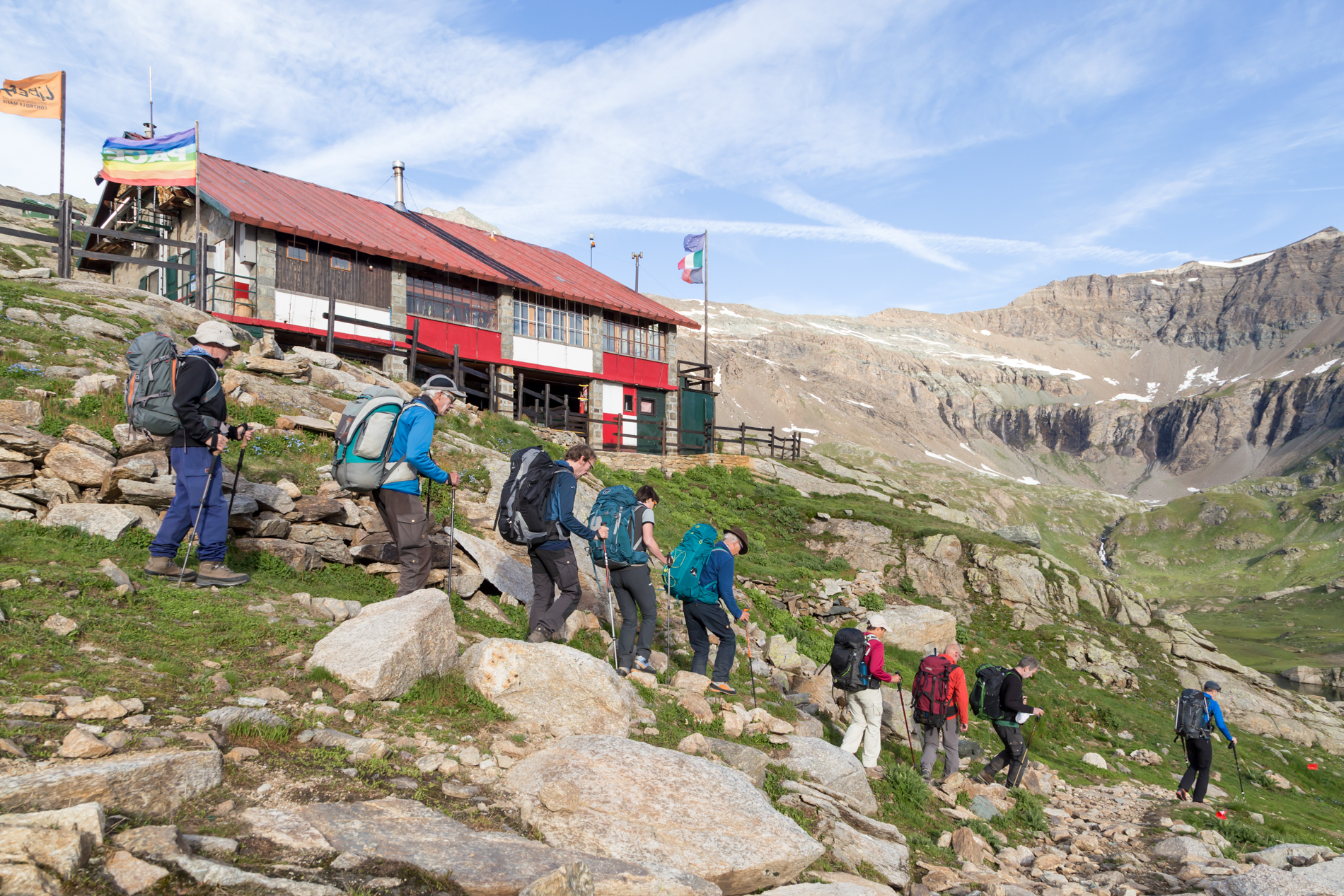 Tijdens deze huttentocht volg je niet alleen goed begaanbare bergpaden, maar loop je ook regelmatig door ongebaand terrein. Dit kan bestaan uit blokkenterrein, rotsplaten of steile gruishellingen. Ook het oversteken van een sneeuwveld kan voorkomen tijdens de tocht. Je loopt regelmatig langs steile afgronden. Lastige stukken zijn meestal goed beveiligd, bijvoorbeeld met staalkabels of trap. Een enkele keer heb je je handen nodig voor een rotsige passage.