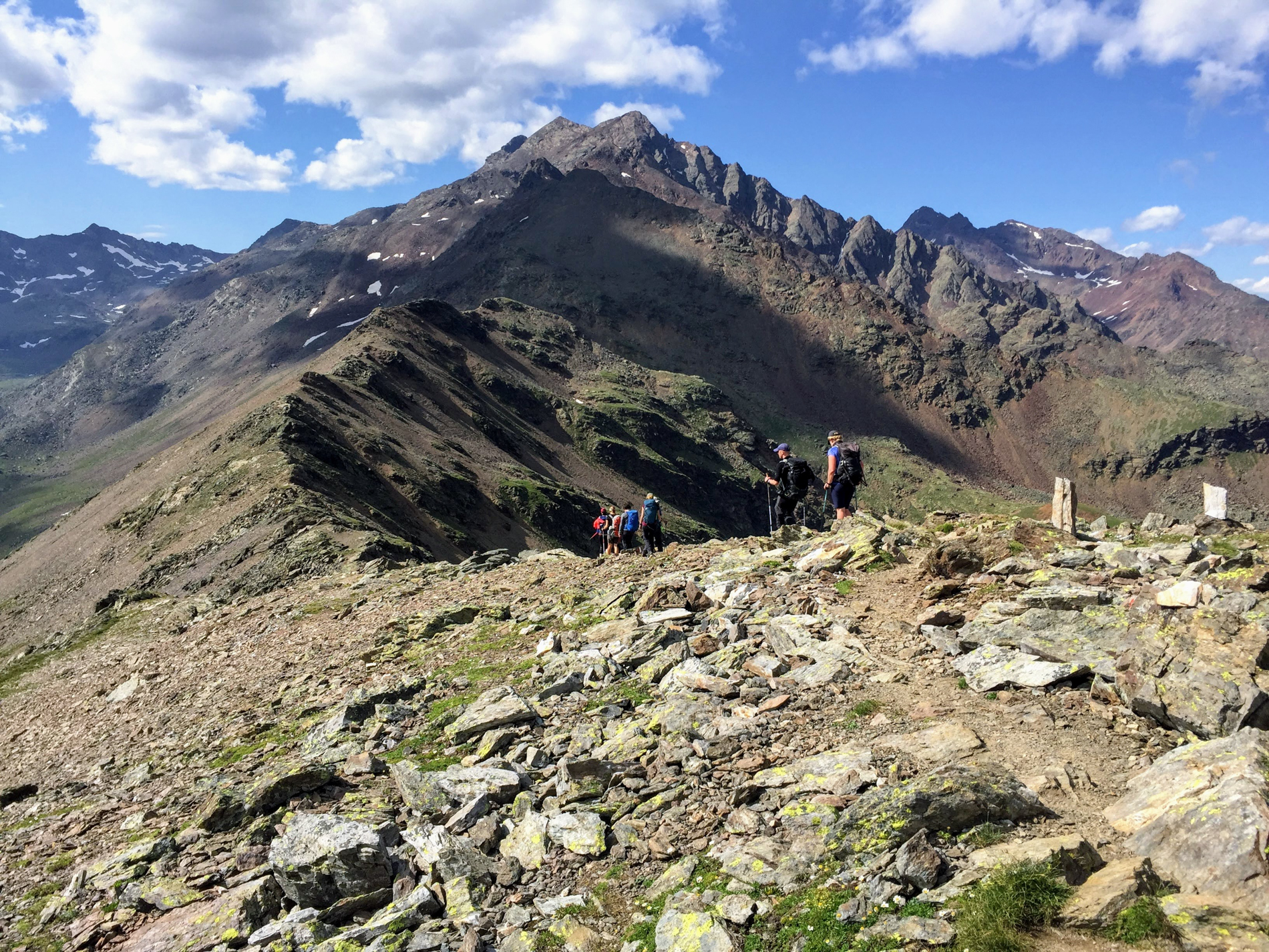 De tocht begint aan het eind van het Ultental en van hieruit trekken we net onder de sneeuw- en gletsjergrens in westelijke richting. In dit kalksteengebergte wandelen we onder de toppen en wanden van de Monte Cevedale (3769 m), de König-Spitze (3859 m) en de Ortler (3905 m) door. Op onze laatste dag dalen we af naar Trafoi aan de voet van de bekende Stelvio pas.