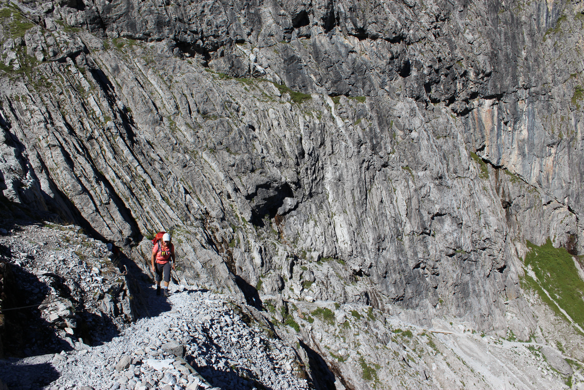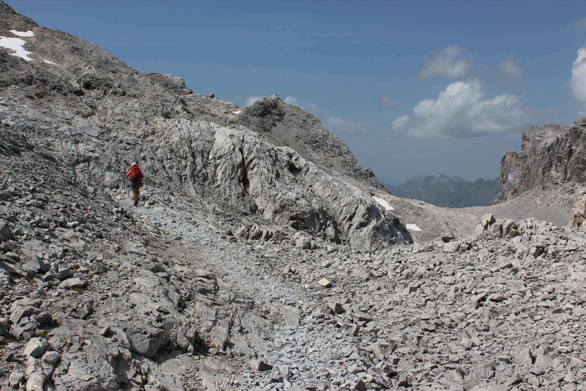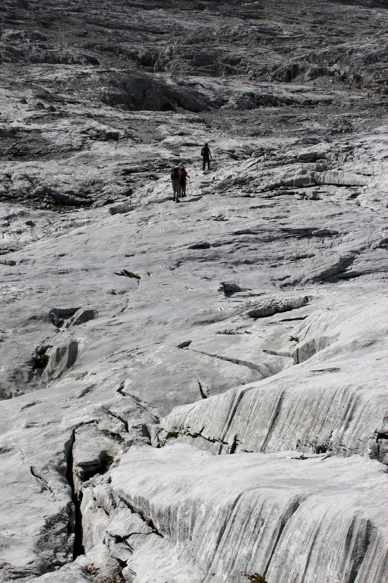 rotsplaten of gruishelling. Ook het oversteken van een sneeuwveld kan voorkomen tijdens de tocht. Soms loop je langs steile hellingen. Lastige stukken zijn meestal goed beveiligd, bijvoorbeeld met staalkabels of trap.